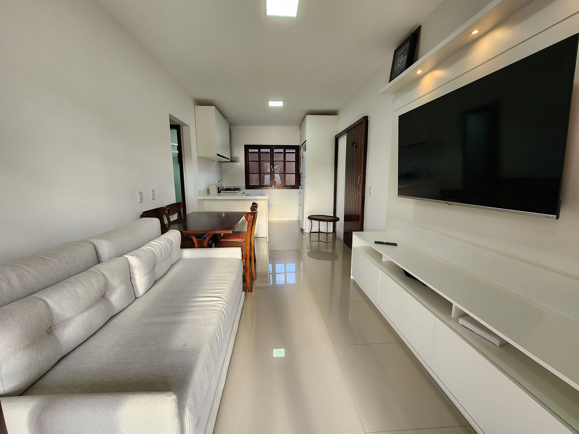 - Sala de estar com sofá cama, ar-condicionado e TV