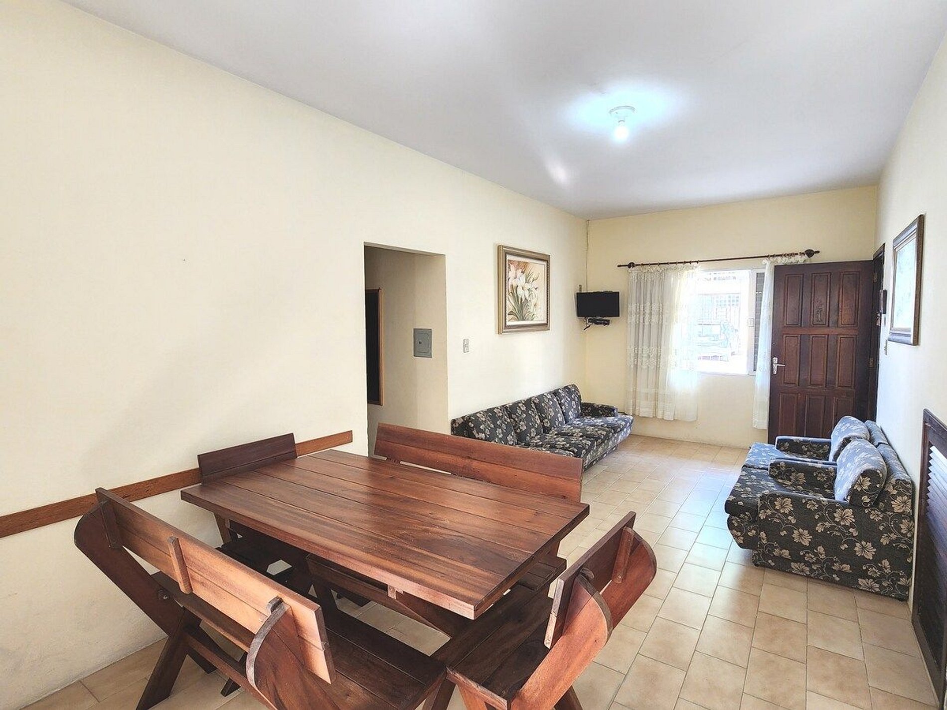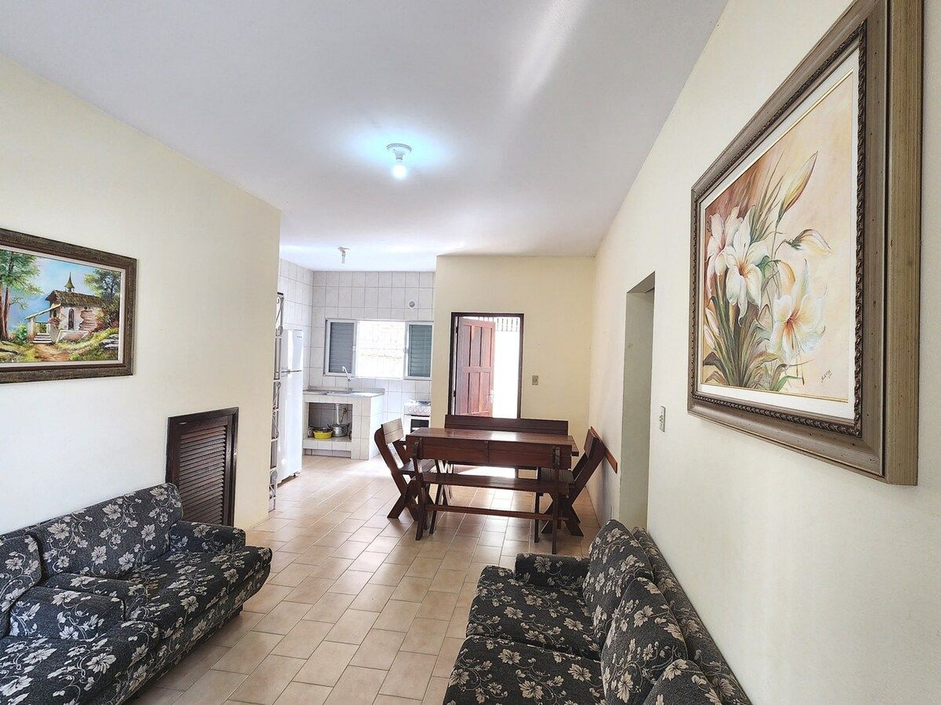 Apartamento amplo e espaçoso, contém: - Sala ampla - Cozinha completa - 3 quartos: Quarto 01 (Cama de casal e ar condicionado), Quarto 02 (2 camas de solteiro em beliche e ar condicionado), Quarto 03 (2 camas de solteiro em beliche e circulador de ar), podemos disponinibilizar um colchão de casal (consulte disponibilidade). - 1 banheiro - 1 vaga em frente ao prédio - Ampla área de serviço - Área de churrasqueira compartilhada