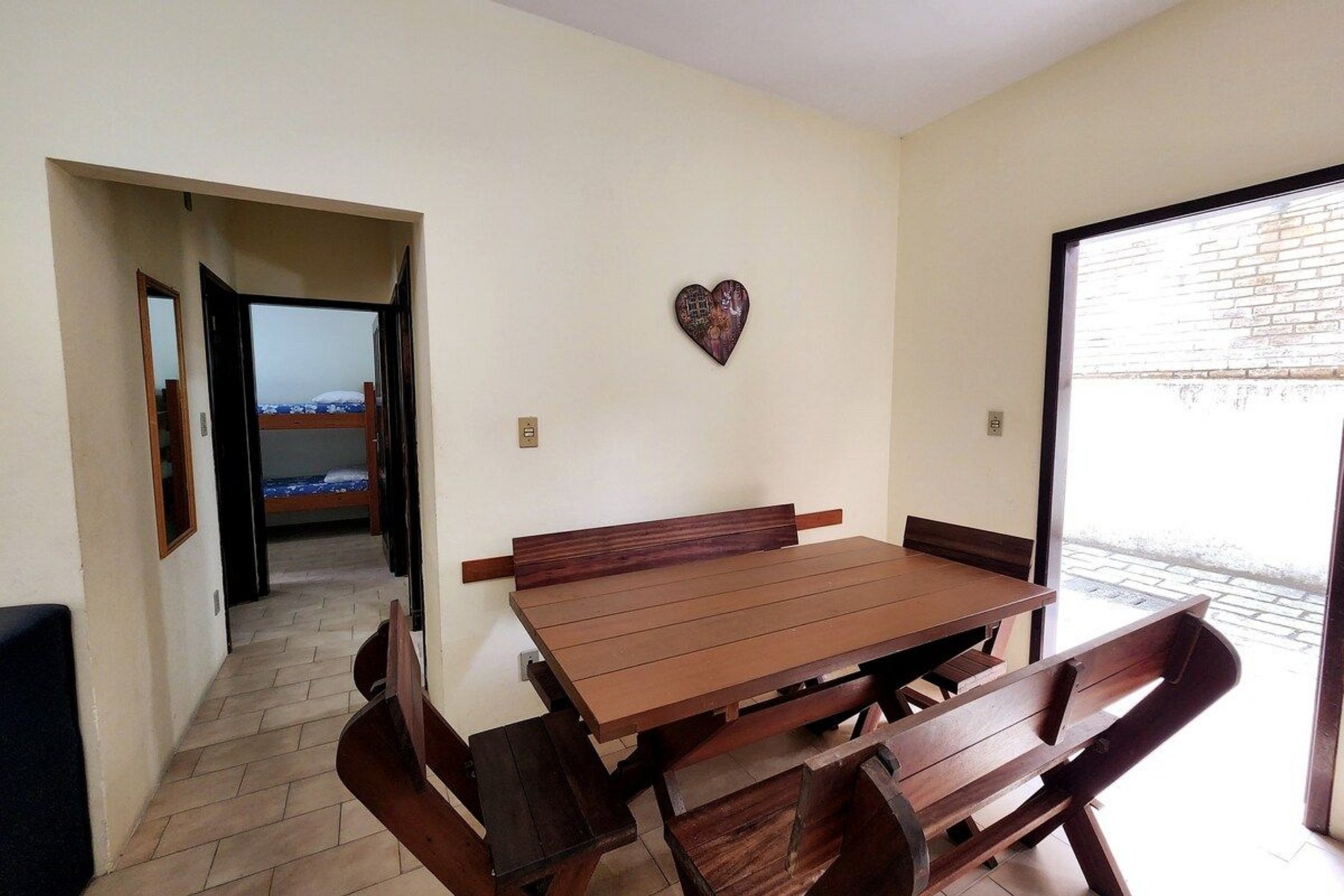 Apartamento amplo e espaçoso, contém: - Sala ampla (possui 1 sofá cama) - Cozinha completa - 3 quartos: Quarto 01 (Cama de casal e ar condicionado), Quarto 02 (2 camas de solteiro em beliche e ar condicionado), Quarto 03 (2 camas de solteiro em beliche e circulador de ar) - 1 banheiro - 1 vaga em frente ao prédio - Ampla área de serviço - Área de churrasqueira compartilhada