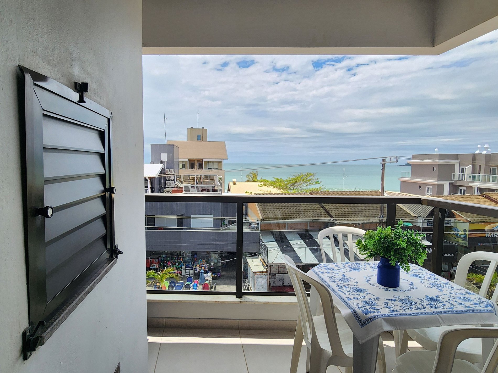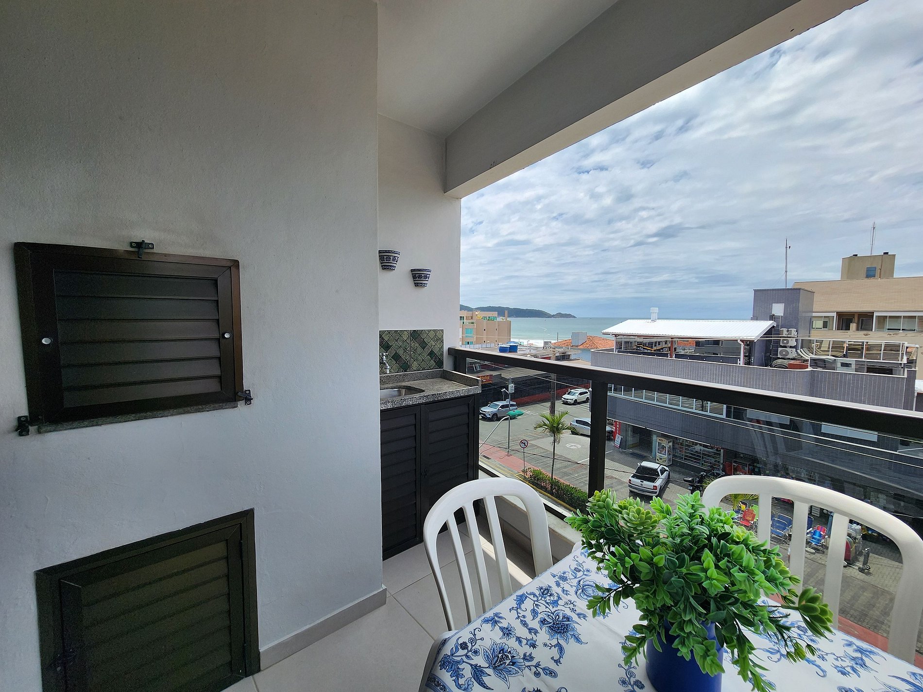 Varanda com churrasqueira e vista para a praia