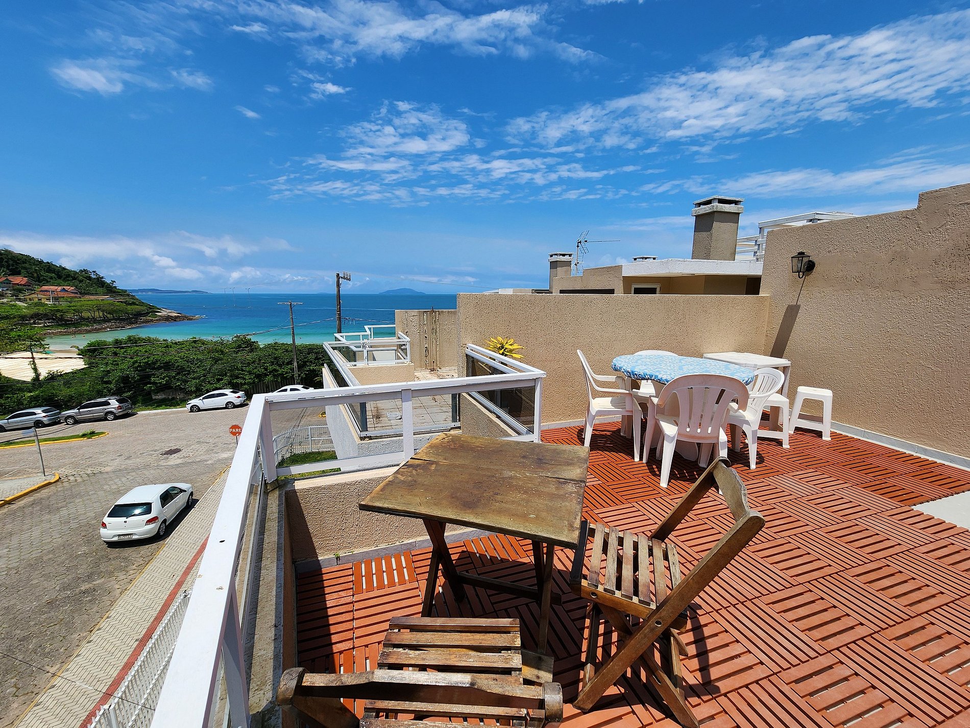 Terraço com churrasqueira, vista para o canto mais charmoso da praia de 4 Ilhas.