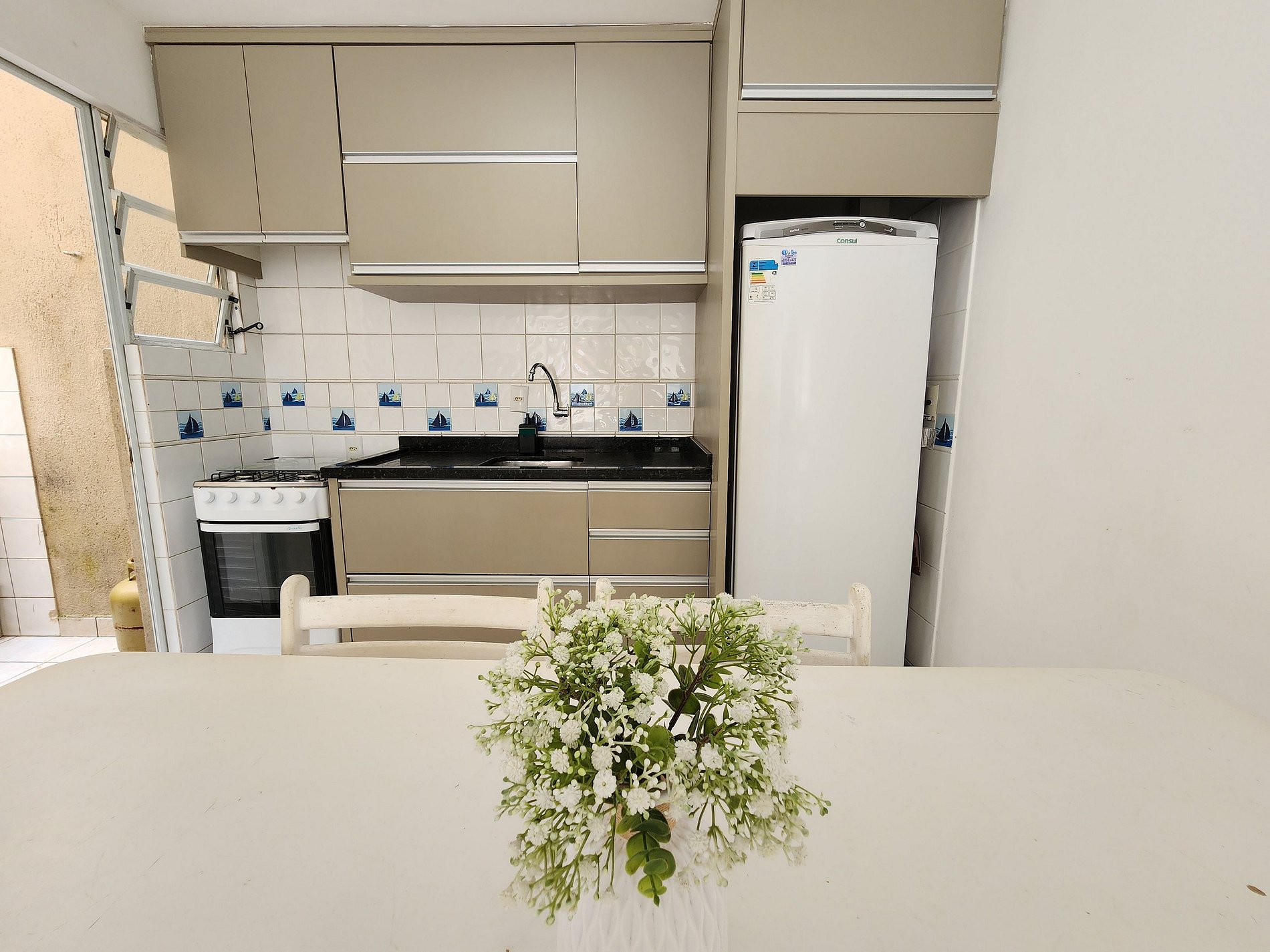 Acomoda até 6 pessoas com 3 dormitórios, sala e cozinha completa (fogão, geladeira, micro-ondas e mesa de jantar).