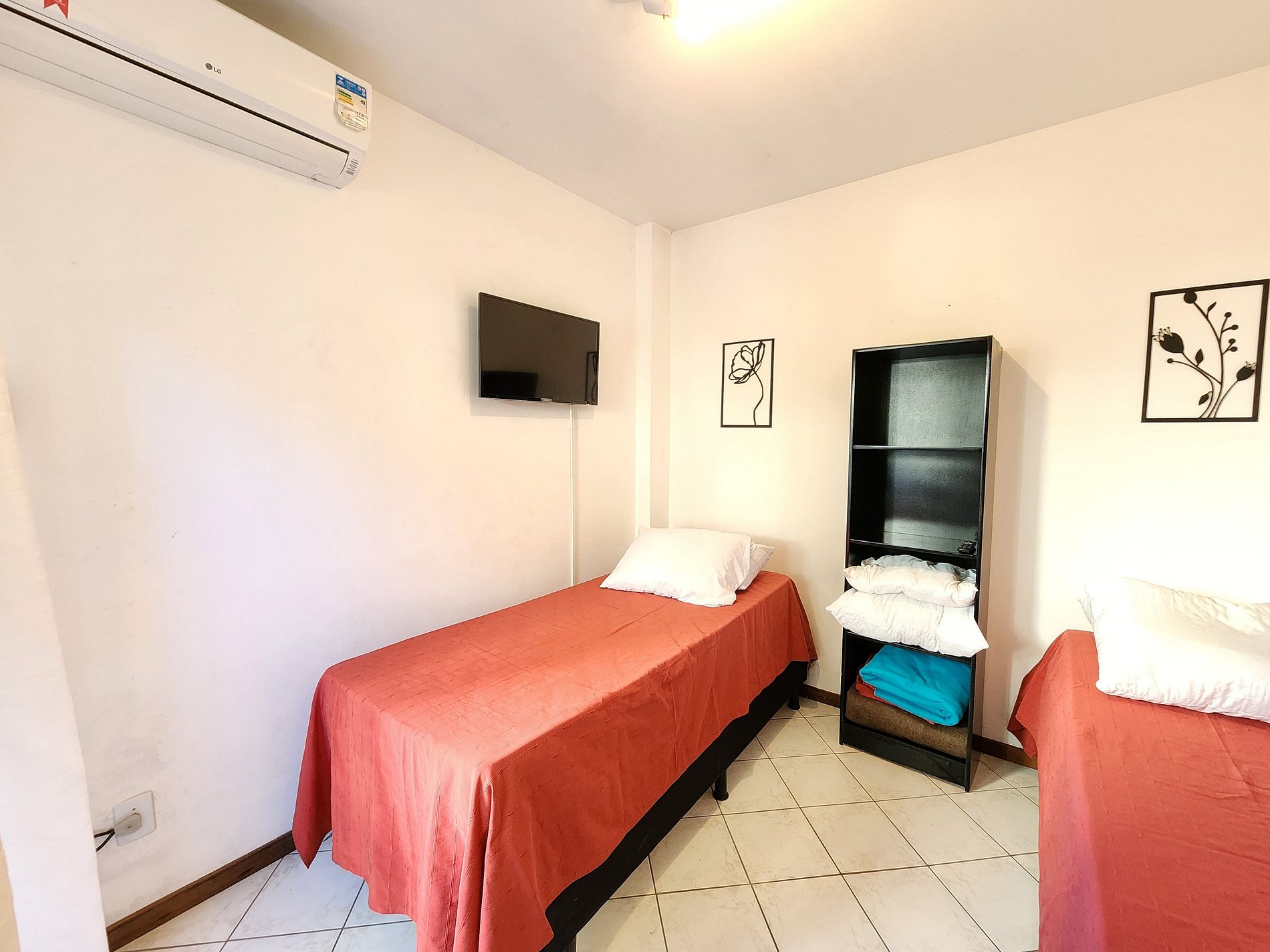 - Um quarto com duas camas de solteiro (podem ser unidas e se tornar cama de casal) e ar condicionado - Dois colchões de solteiro extras