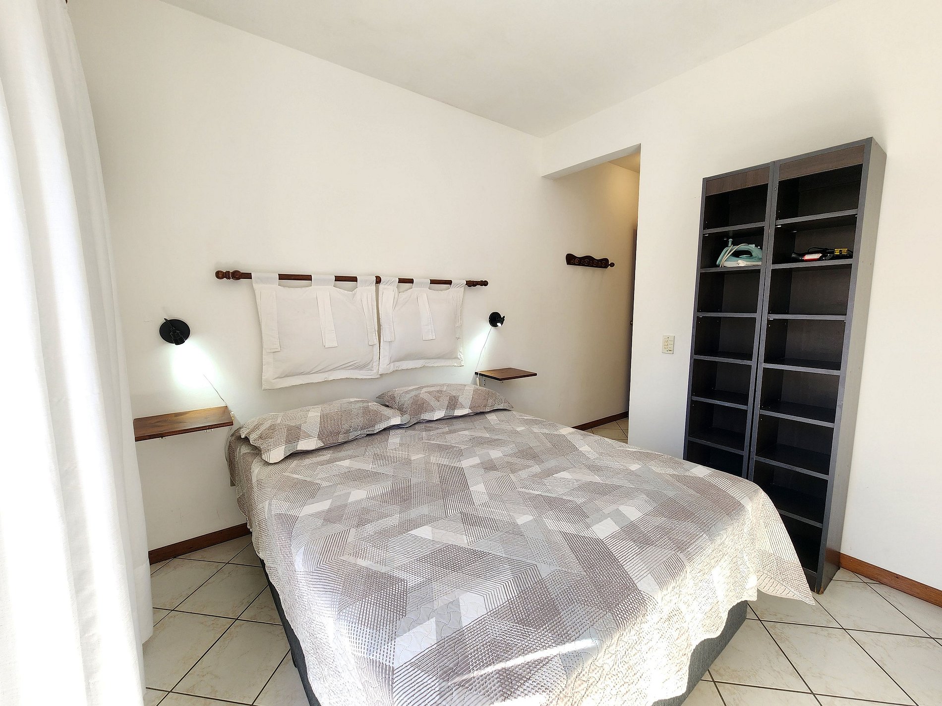 - Uma suíte com cama de casal, ar condicionado, banheiro completo, balcão/sacada;