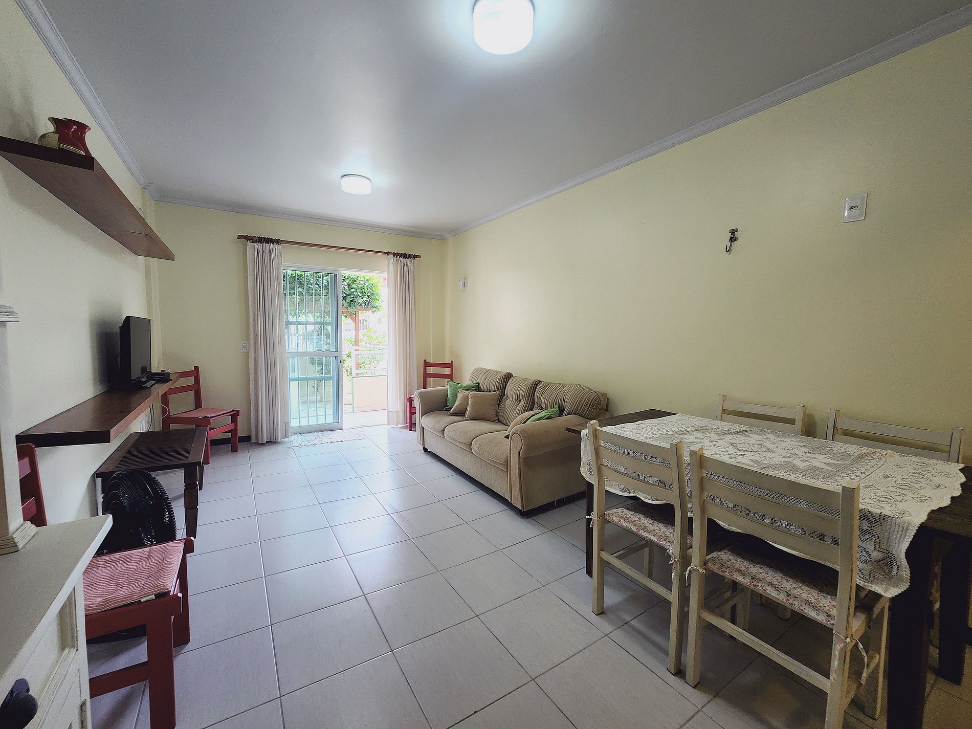 Sala com Ventilador portátil e bem ventilada, TV, rede de descanso (pode ser usada na varanda também)