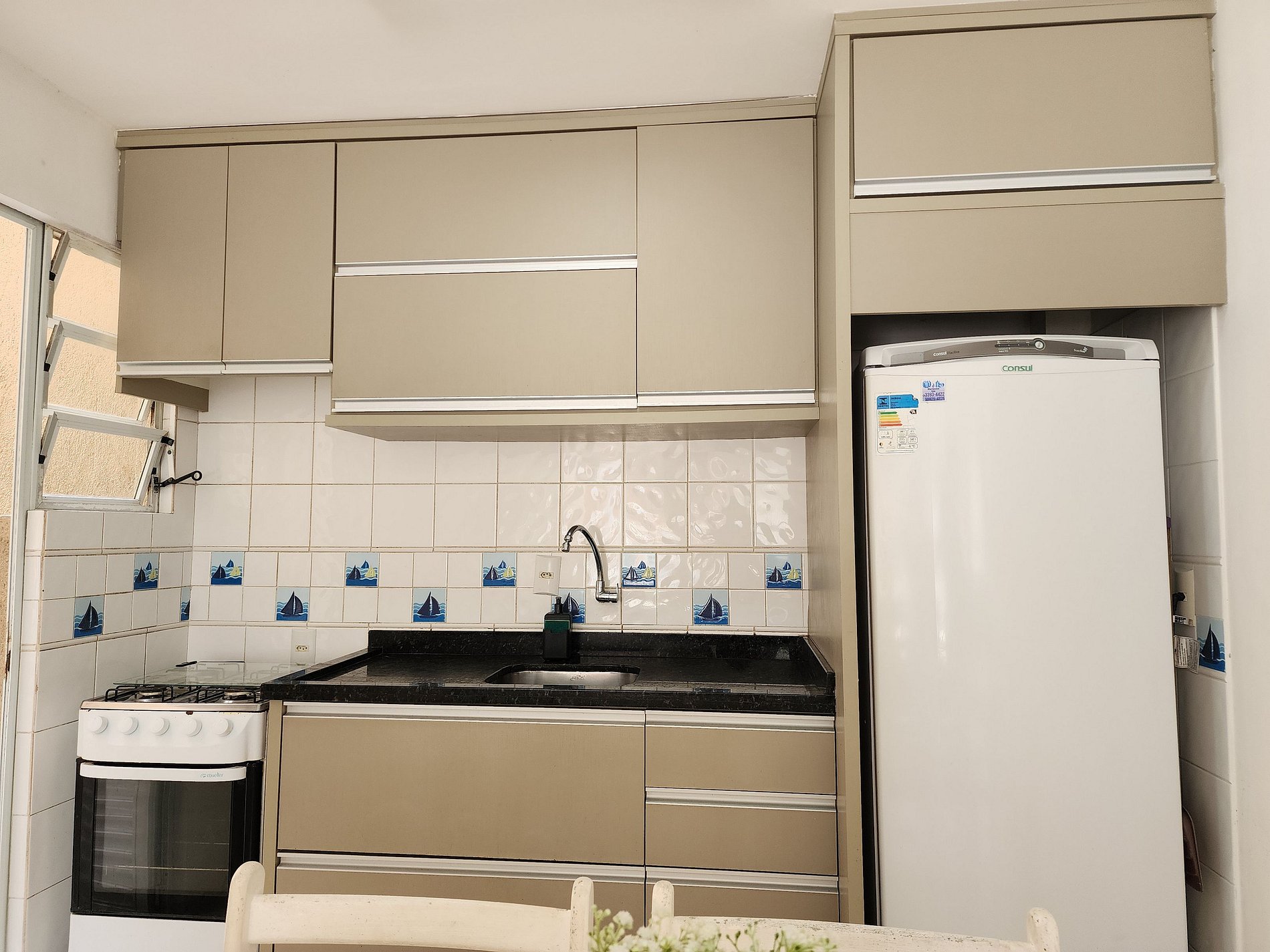 Acomoda até 6 pessoas com 3 dormitórios, sala e cozinha completa (fogão, geladeira, micro-ondas e mesa de jantar).