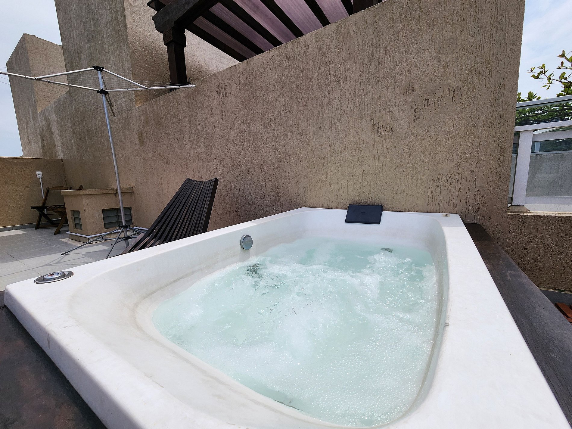 Triplex com entrada individual, localizado na Praia de Quatro Ilhas com vista para o mar e banheira de hidromassagem!