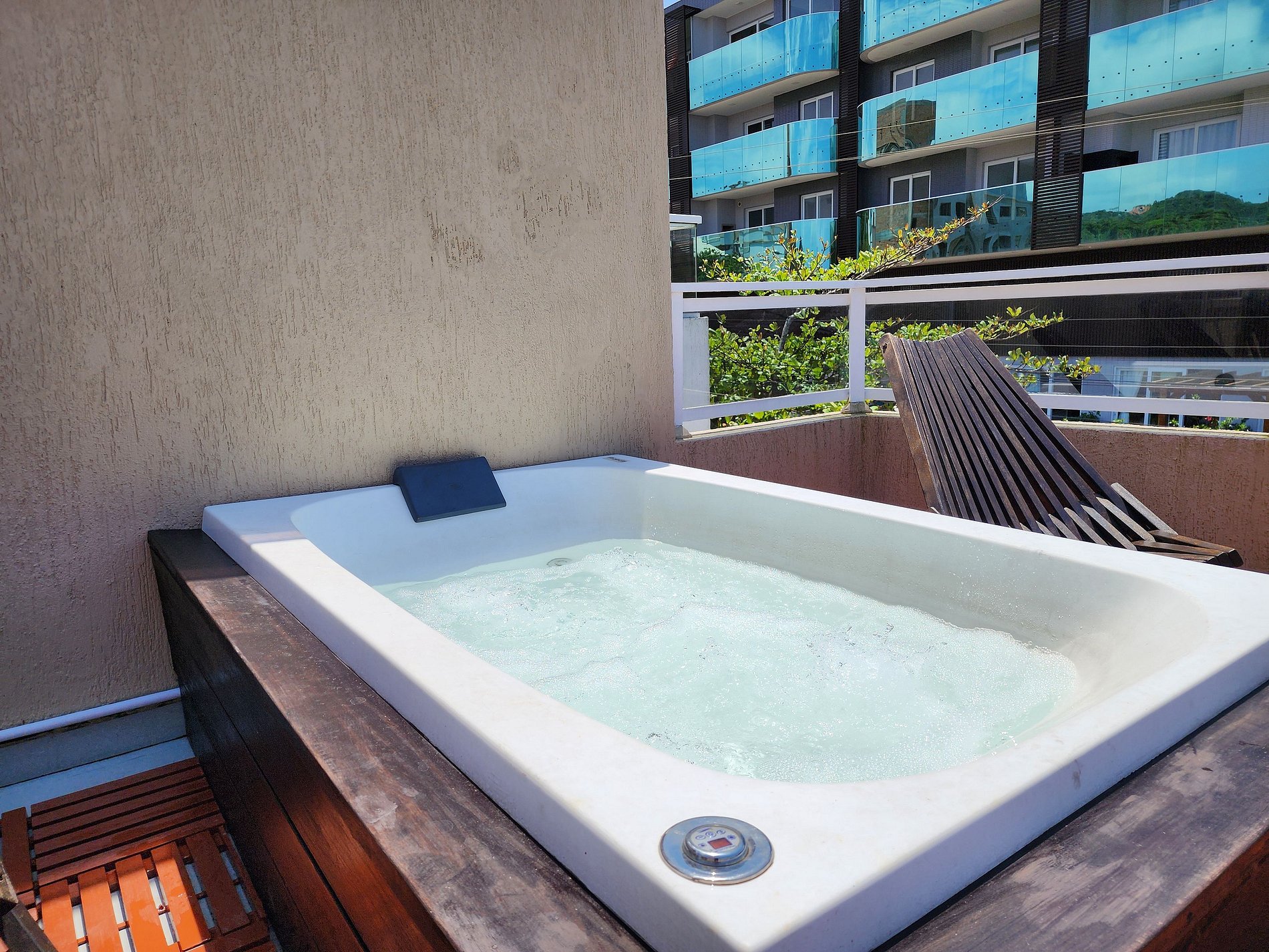 - Terceiro Andar: Terraço com churrasqueira, banheira de hidromassagem e uma vista incrível da praia de 4 Ilhas