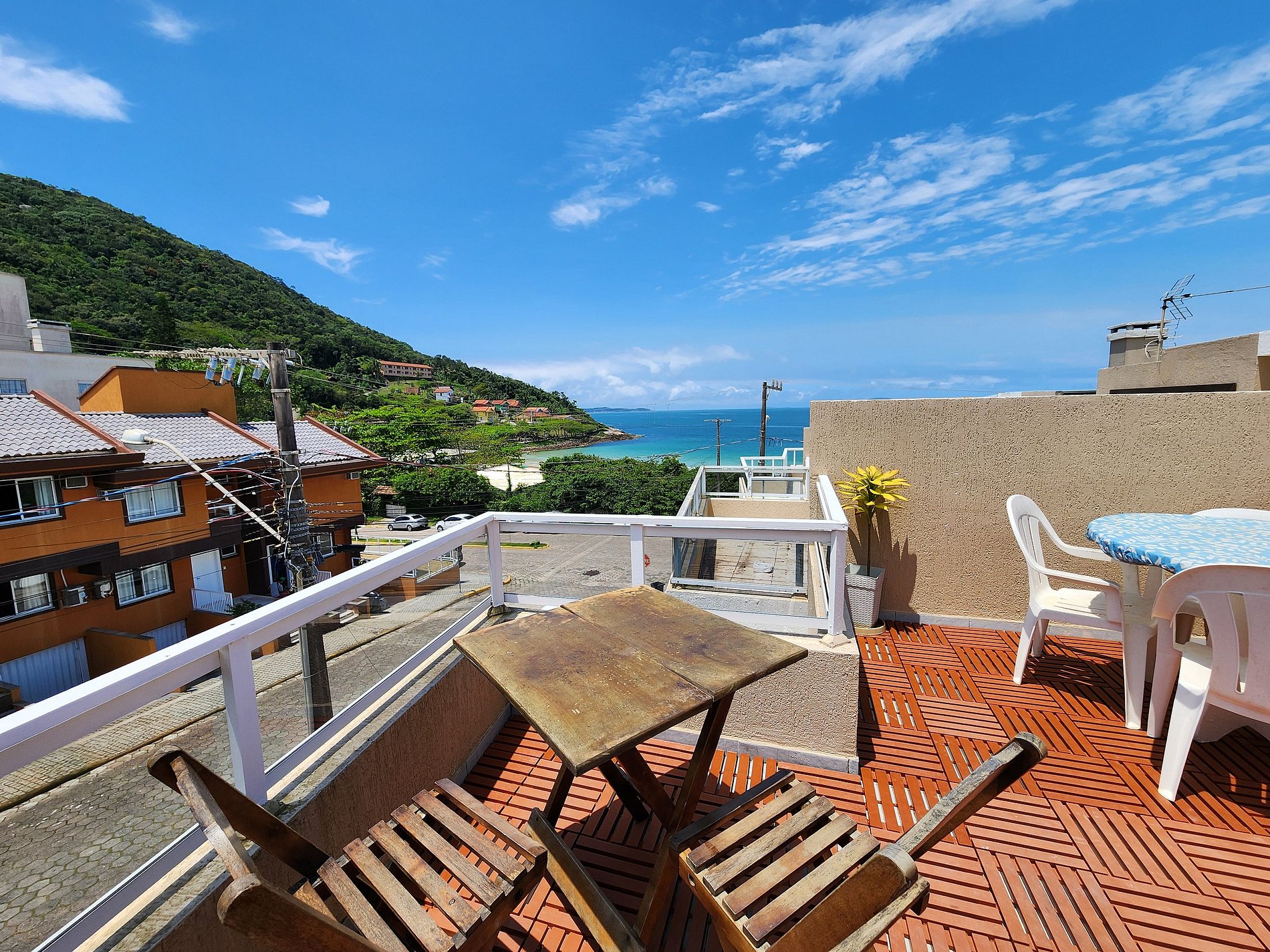 Terraço com churrasqueira, vista para o canto mais charmoso da praia de 4 Ilhas.