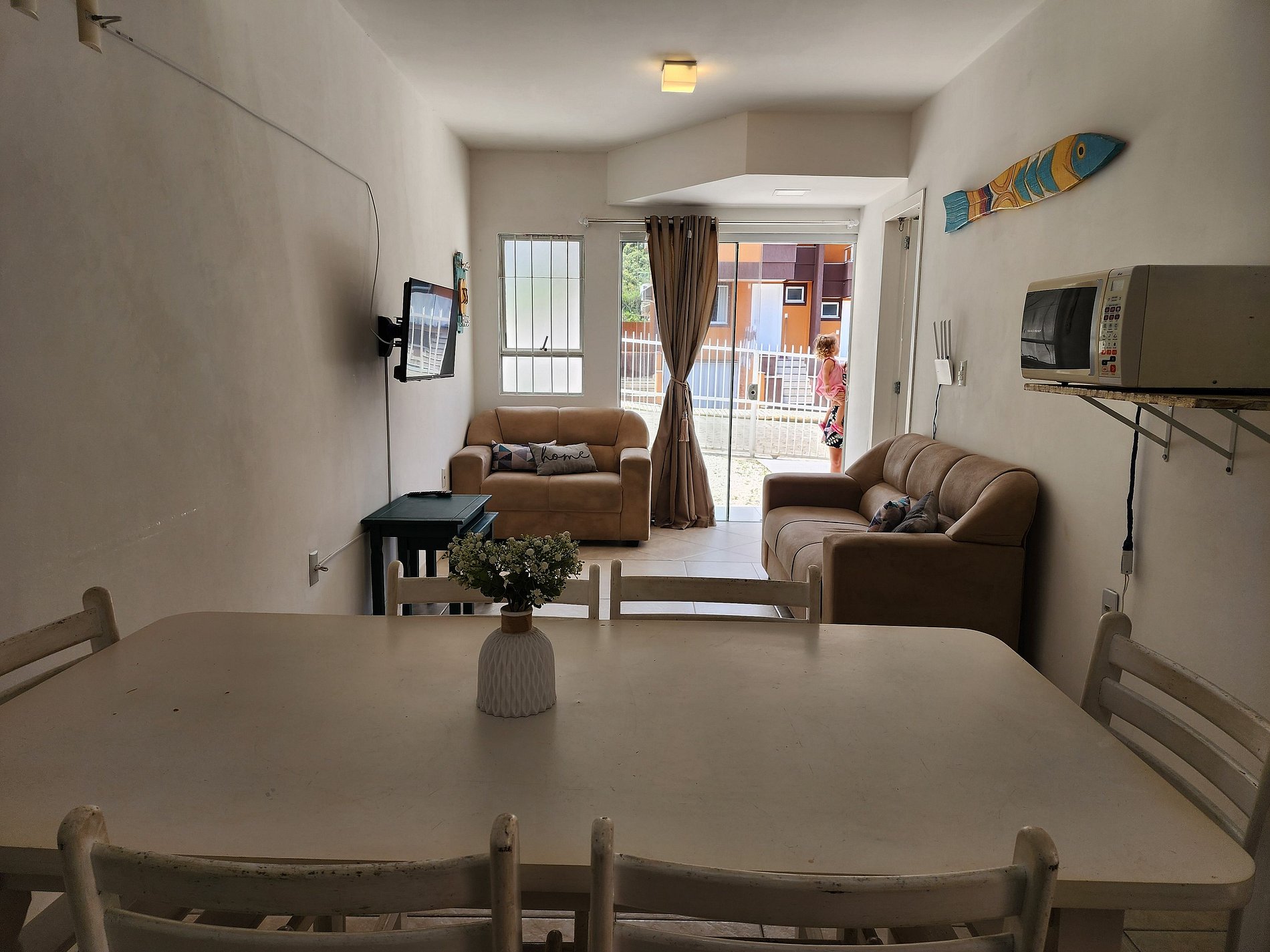 Acomoda até 6 pessoas com 3 dormitórios, sala e cozinha completa (fogão, geladeira, micro-ondas e mesa de jantar).