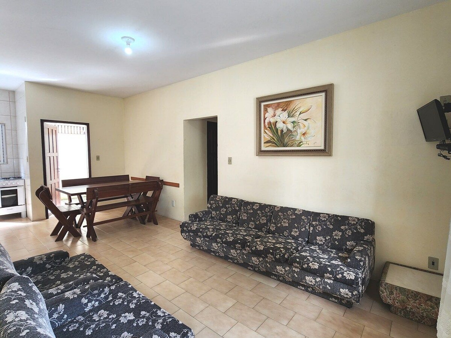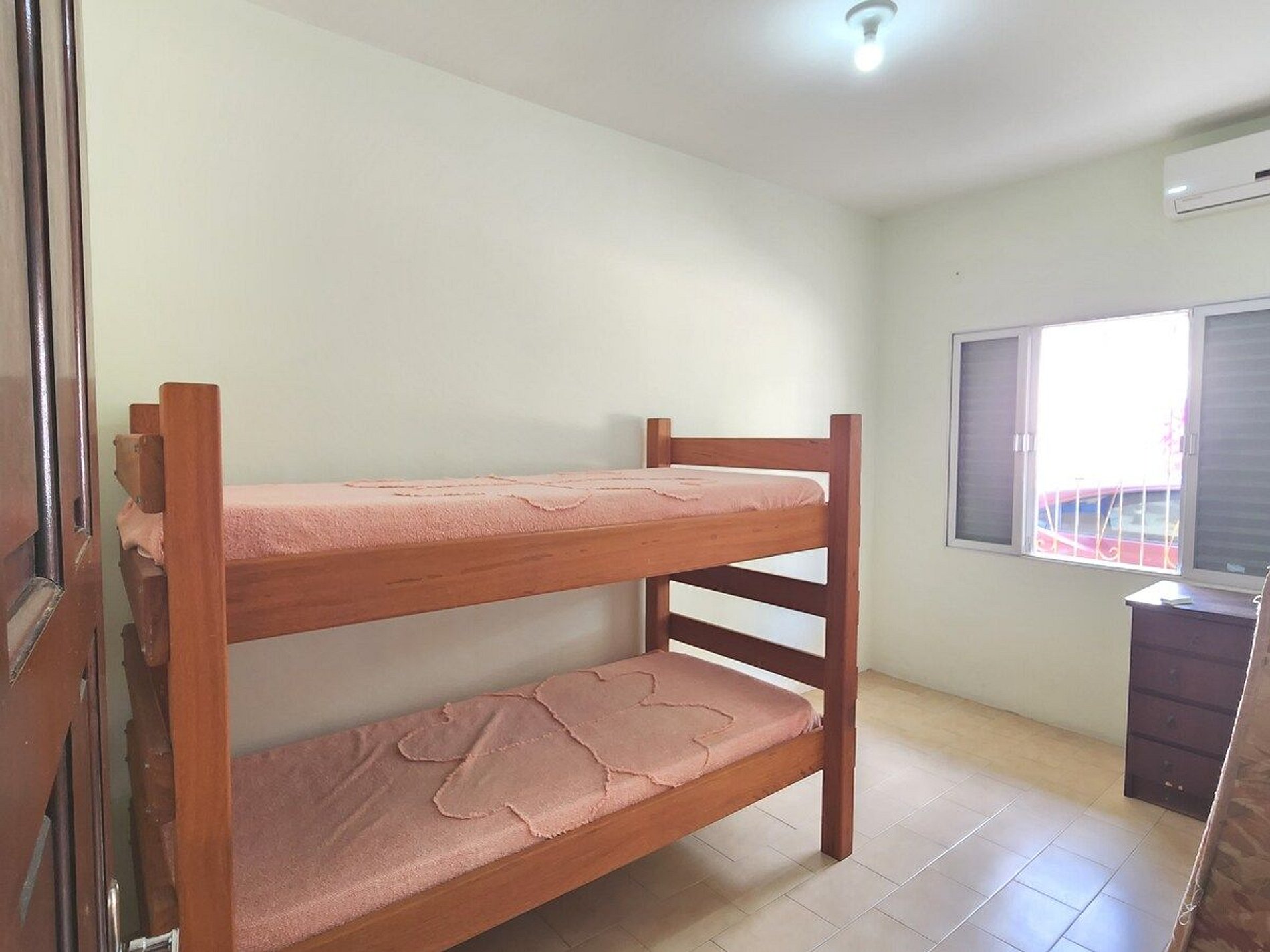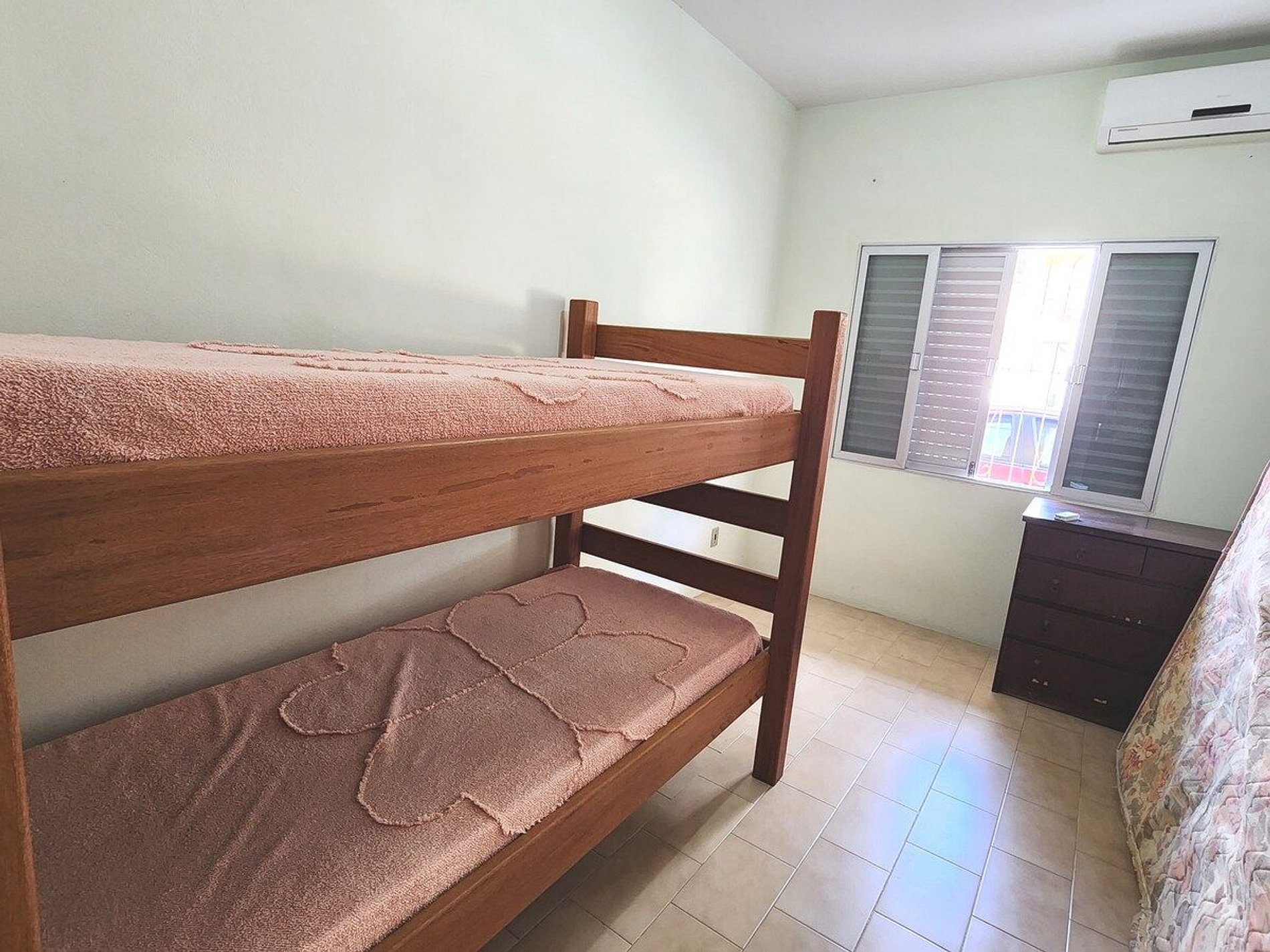 Apartamento amplo e espaçoso, contém: - Sala ampla - Cozinha completa - 3 quartos: Quarto 01 (Cama de casal e ar condicionado), Quarto 02 (2 camas de solteiro em beliche e ar condicionado), Quarto 03 (2 camas de solteiro em beliche e circulador de ar), podemos disponinibilizar um colchão de casal (consulte disponibilidade). - 1 banheiro - 1 vaga em frente ao prédio - Ampla área de serviço - Área de churrasqueira compartilhada