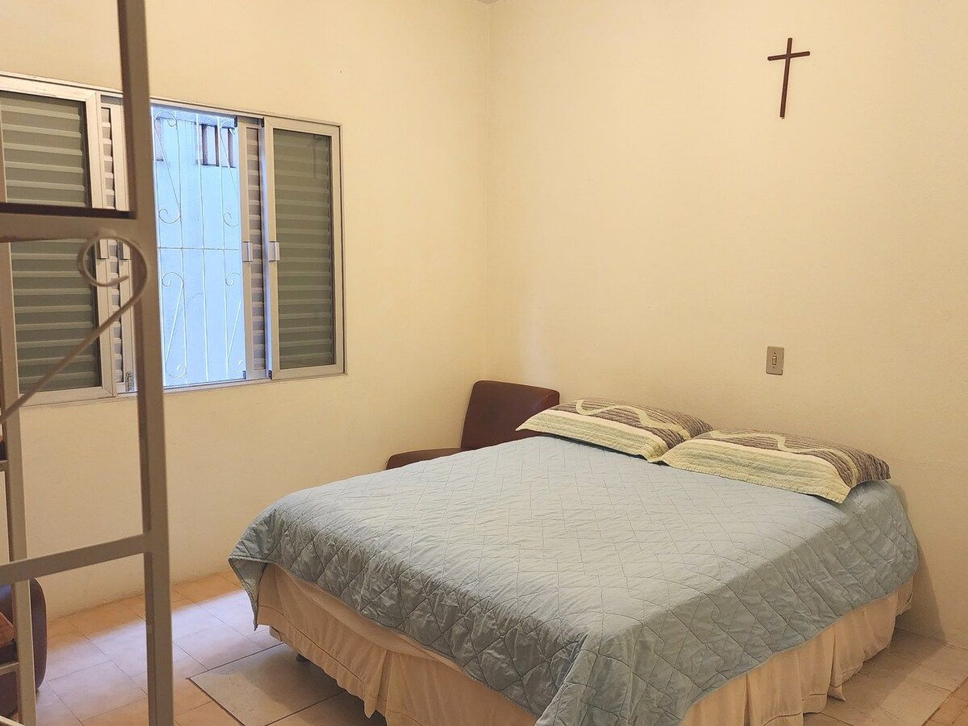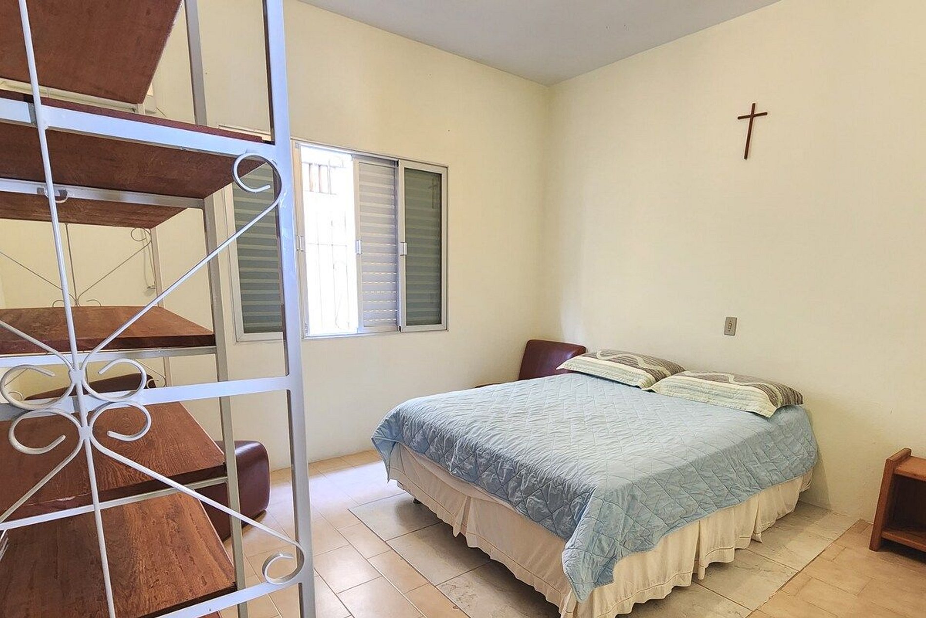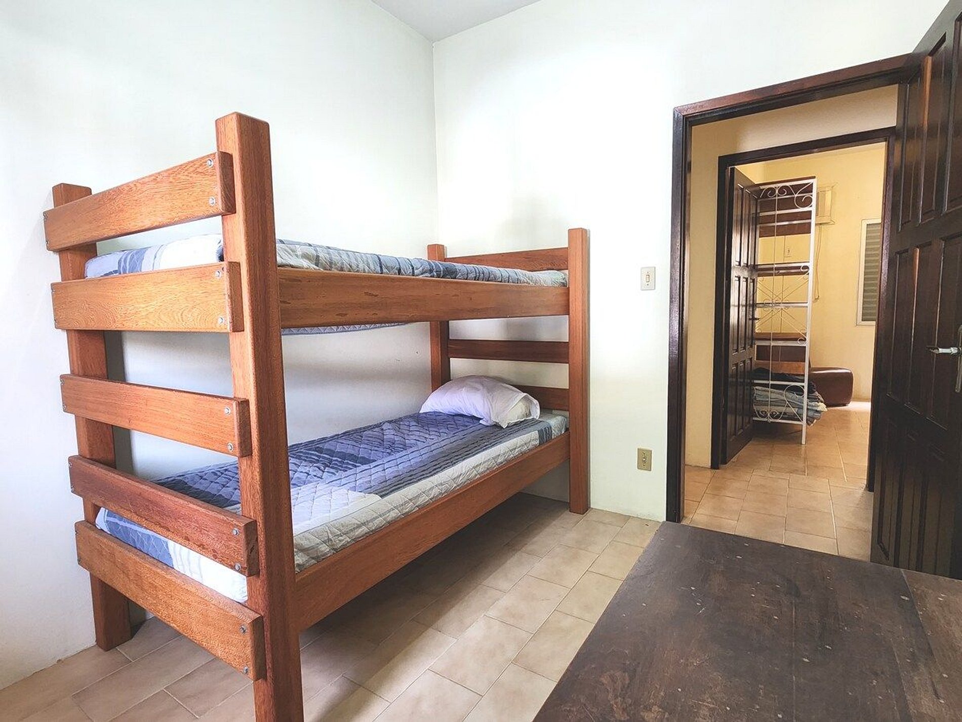 Apartamento amplo e espaçoso, contém: - Sala ampla - Cozinha completa - 3 quartos: Quarto 01 (Cama de casal e ar condicionado), Quarto 02 (2 camas de solteiro em beliche e ar condicionado), Quarto 03 (2 camas de solteiro em beliche e circulador de ar), podemos disponinibilizar um colchão de casal (consulte disponibilidade). - 1 banheiro - 1 vaga em frente ao prédio - Ampla área de serviço - Área de churrasqueira compartilhada