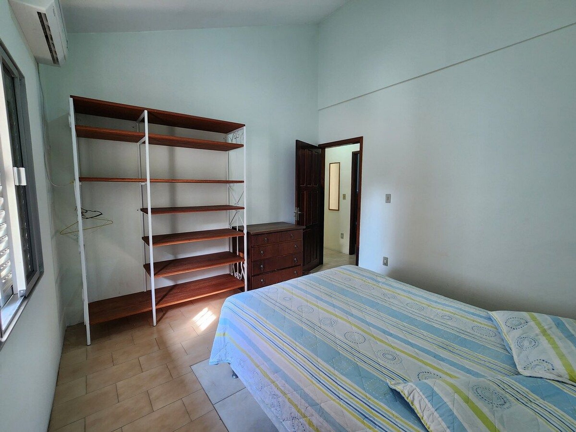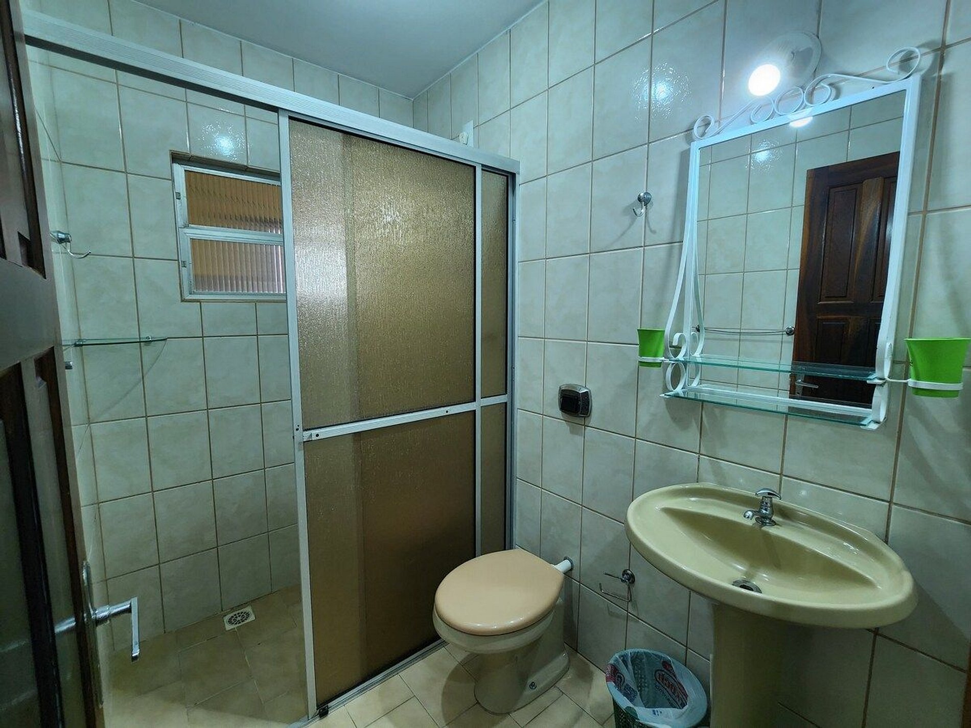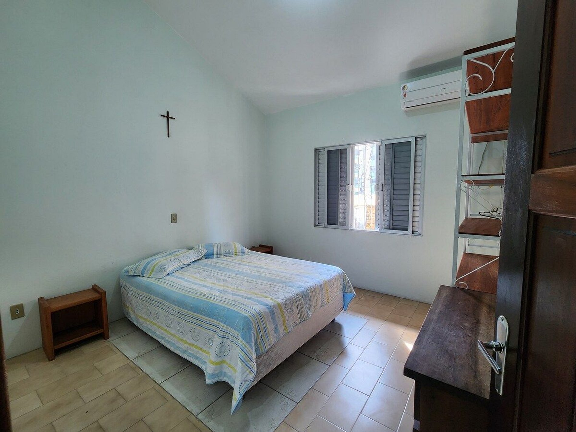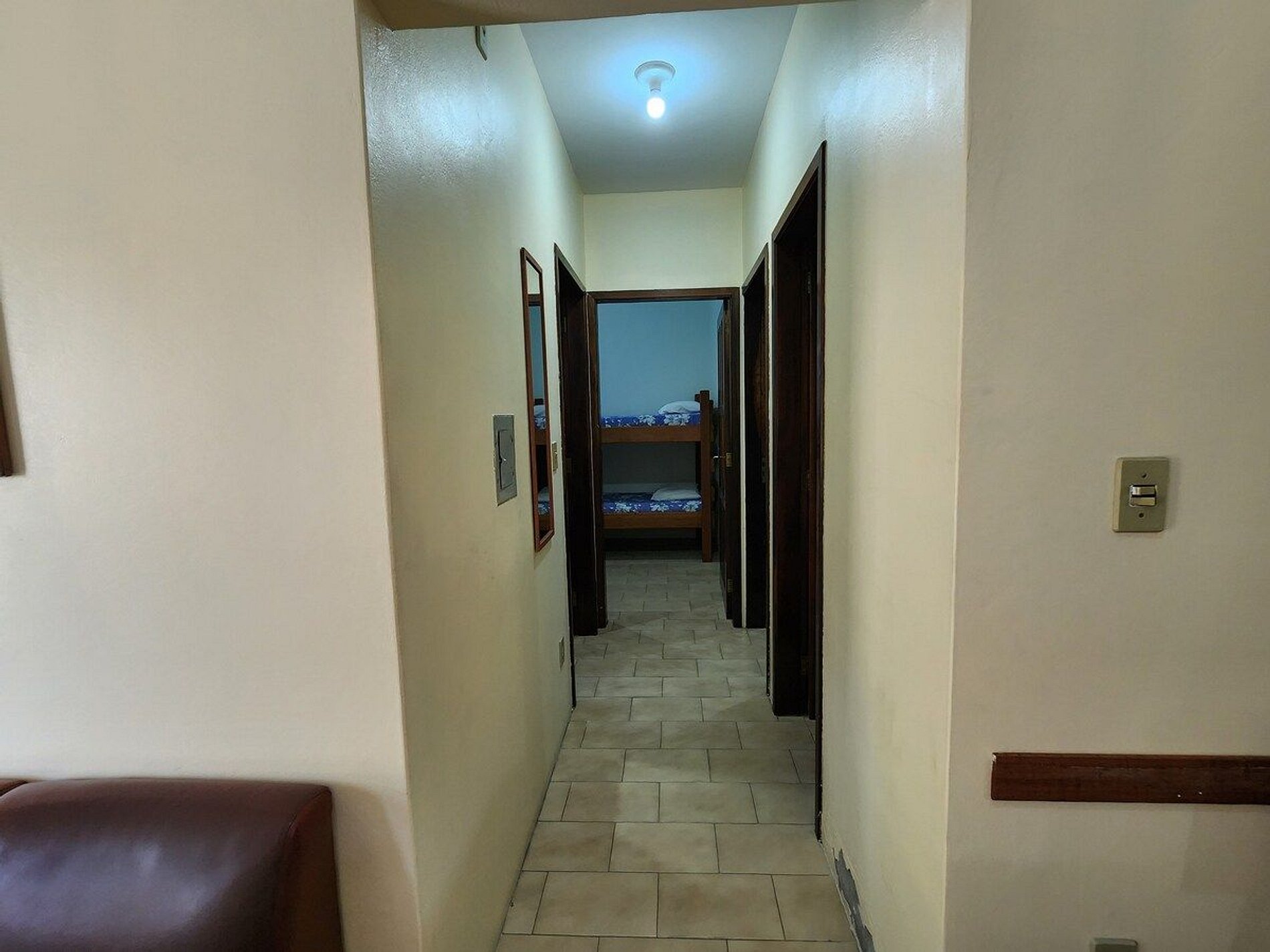 Apartamento amplo e espaçoso, contém: - Sala ampla (possui 1 sofá cama) - Cozinha completa - 3 quartos: Quarto 01 (Cama de casal e ar condicionado), Quarto 02 (2 camas de solteiro em beliche e ar condicionado), Quarto 03 (2 camas de solteiro em beliche e circulador de ar) - 1 banheiro - 1 vaga em frente ao prédio - Ampla área de serviço - Área de churrasqueira compartilhada - sacada com vista para a praia