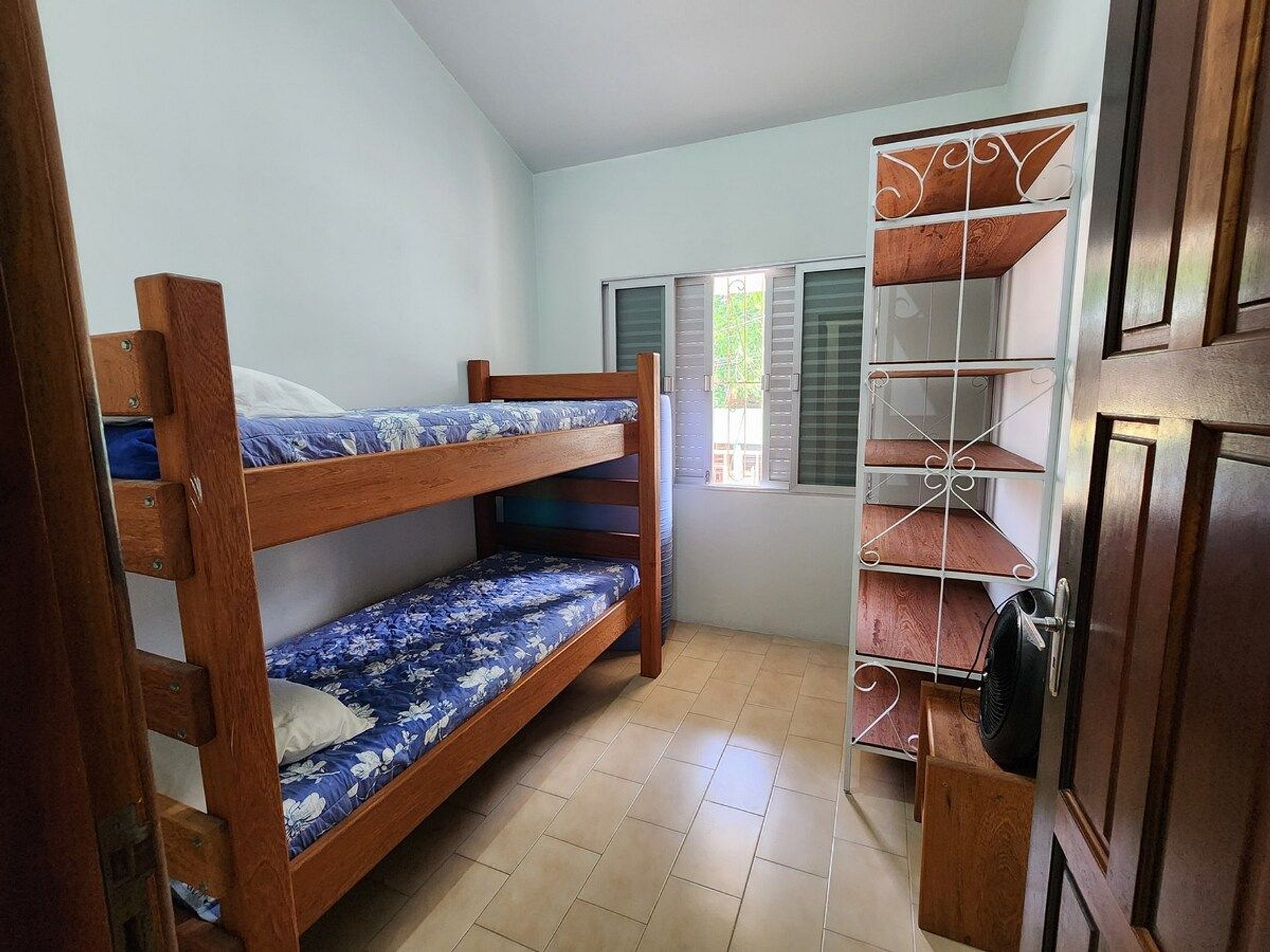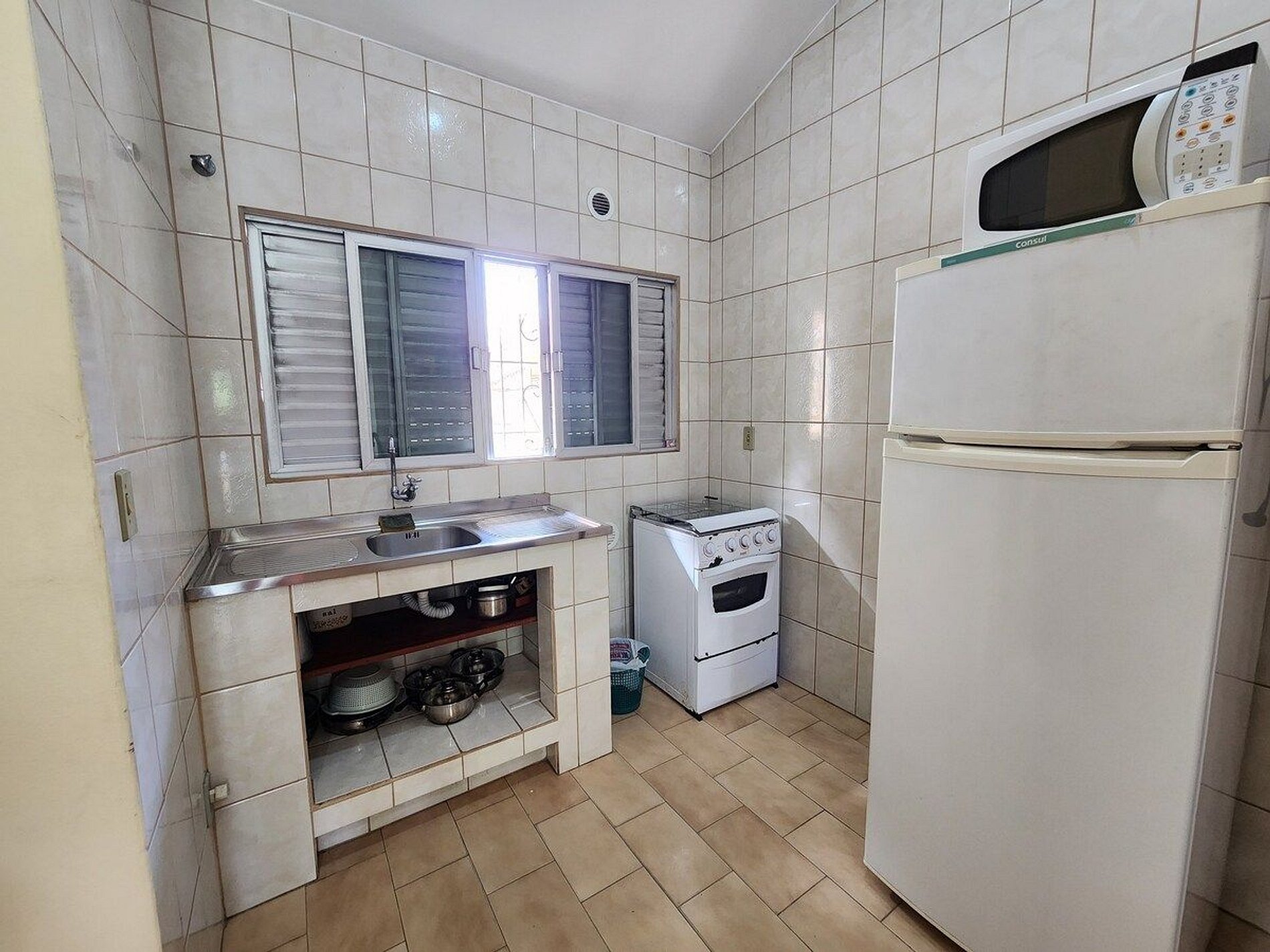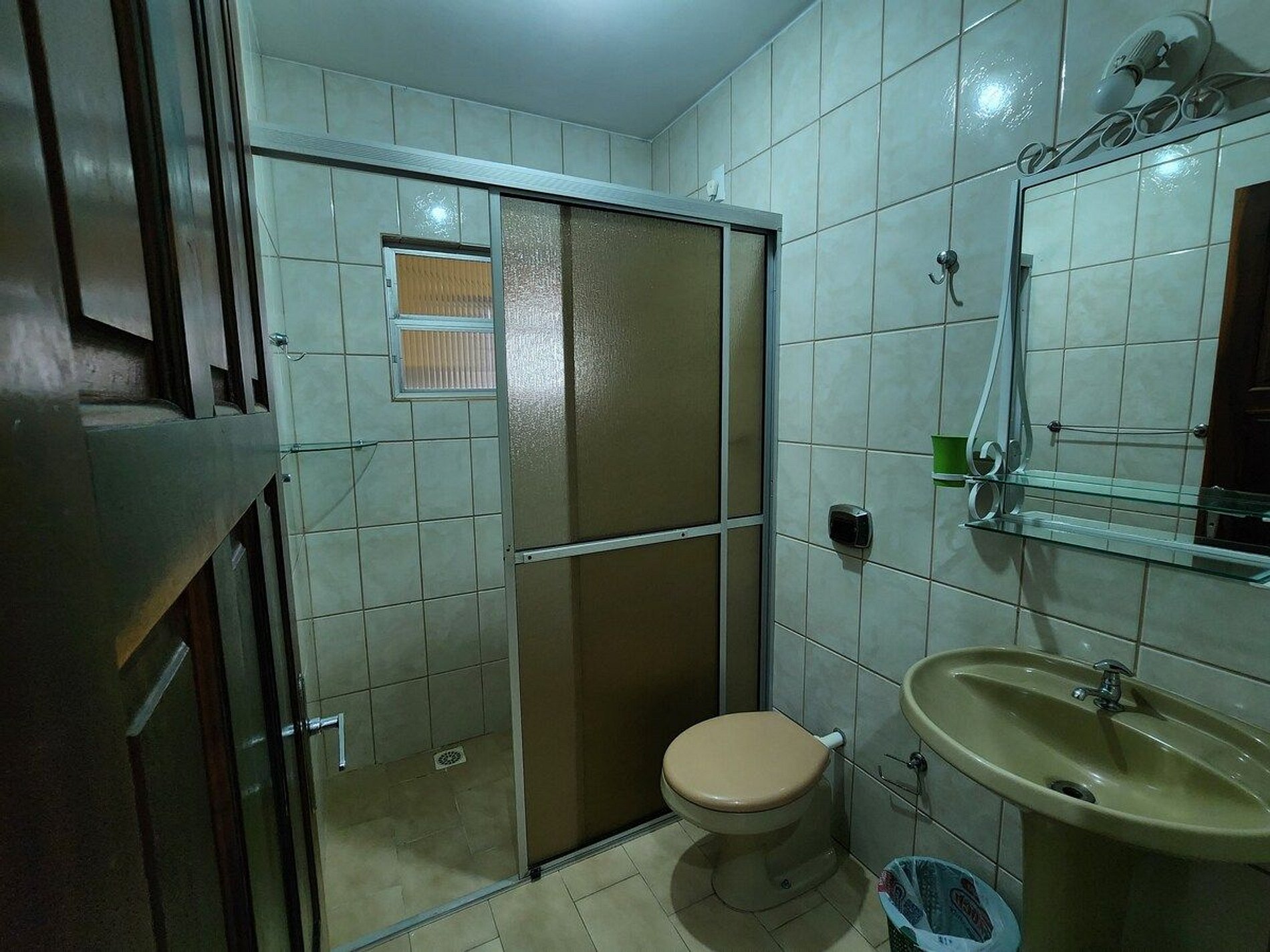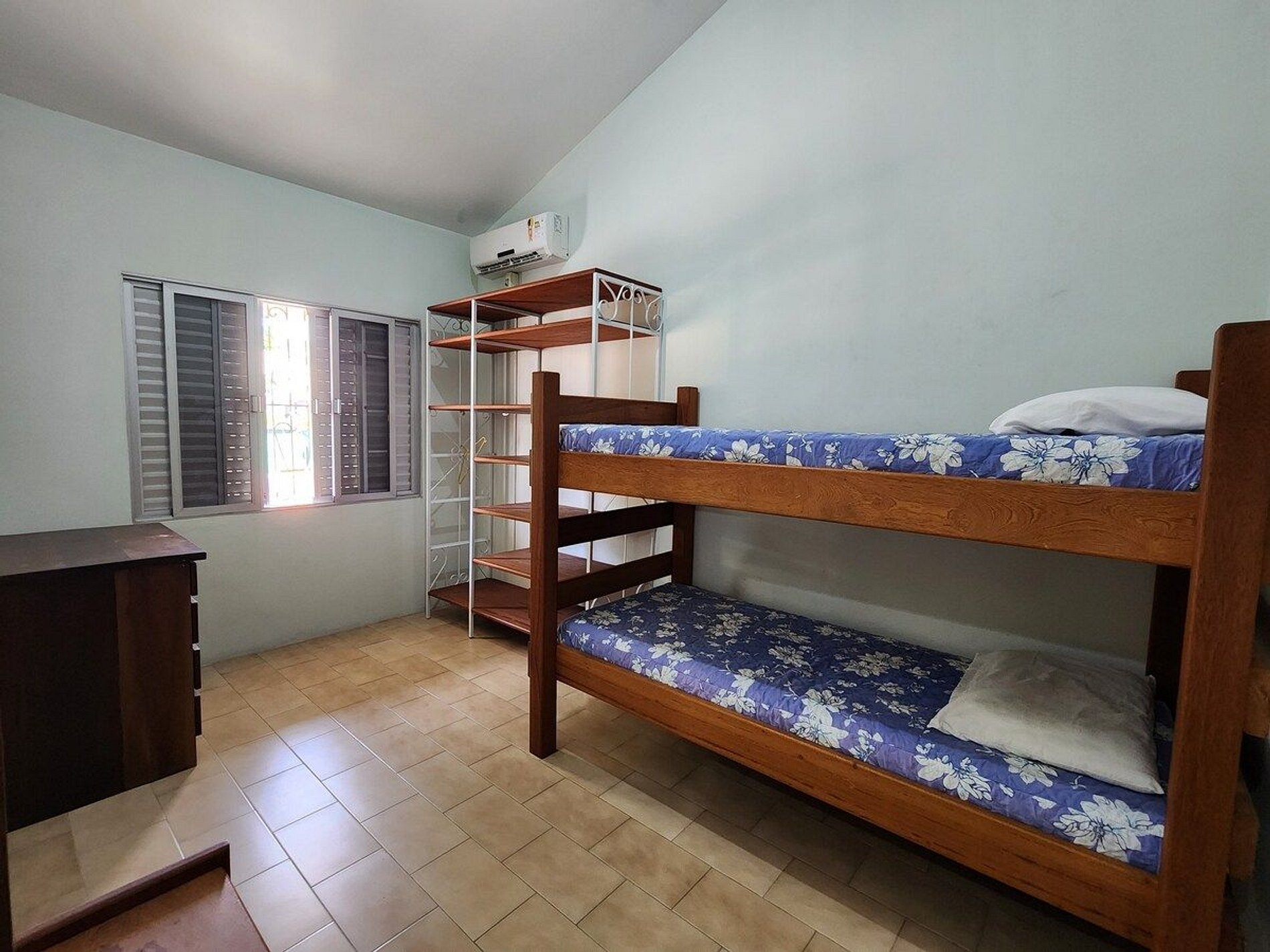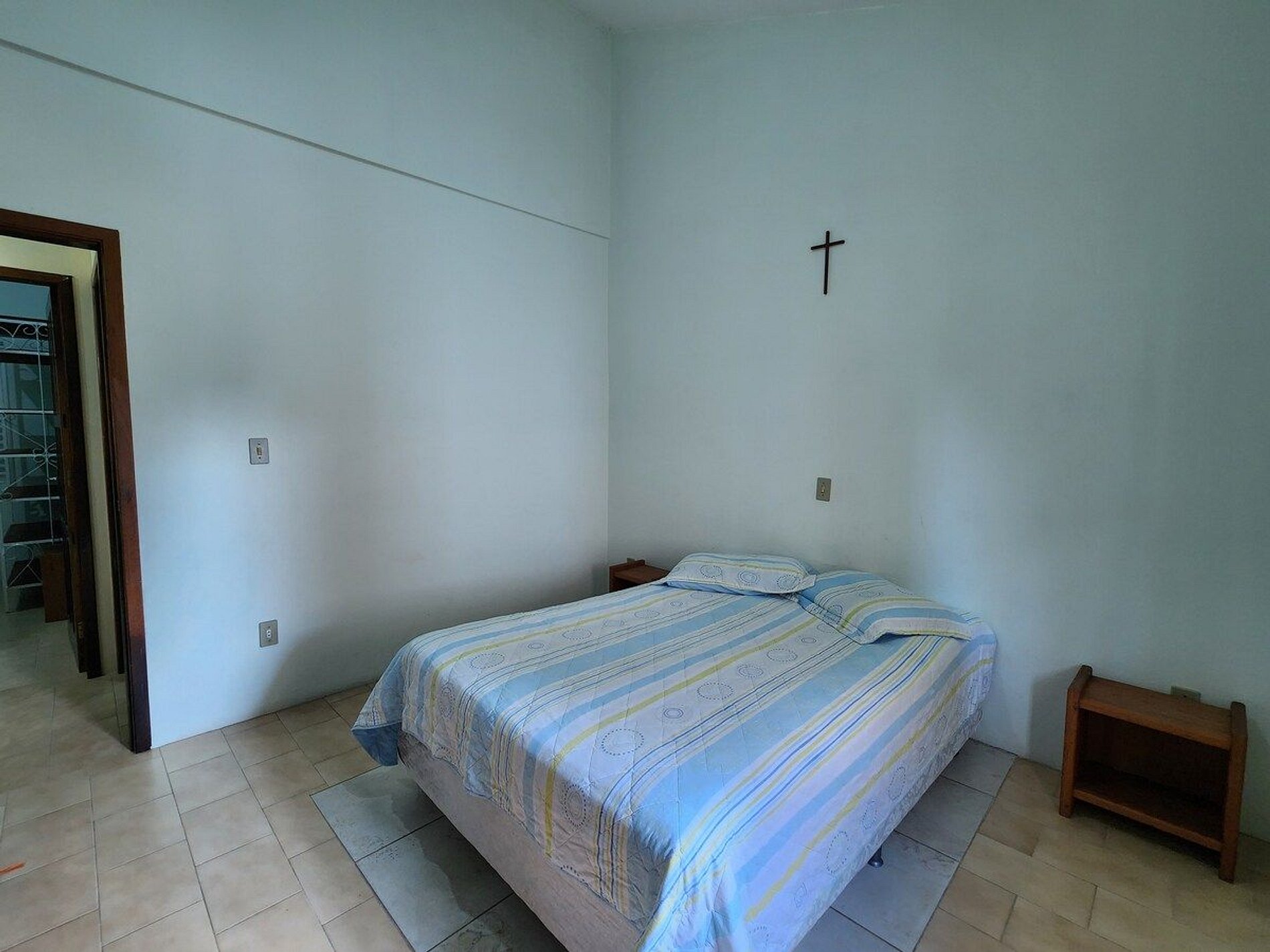 Apartamento amplo e espaçoso, contém: - Sala ampla (possui 1 sofá cama) - Cozinha completa - 3 quartos: Quarto 01 (Cama de casal e ar condicionado), Quarto 02 (2 camas de solteiro em beliche e ar condicionado), Quarto 03 (2 camas de solteiro em beliche e circulador de ar) - 1 banheiro - 1 vaga em frente ao prédio - Ampla área de serviço - Área de churrasqueira compartilhada - sacada com vista para a praia