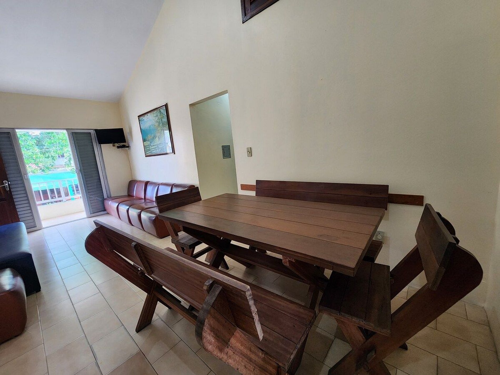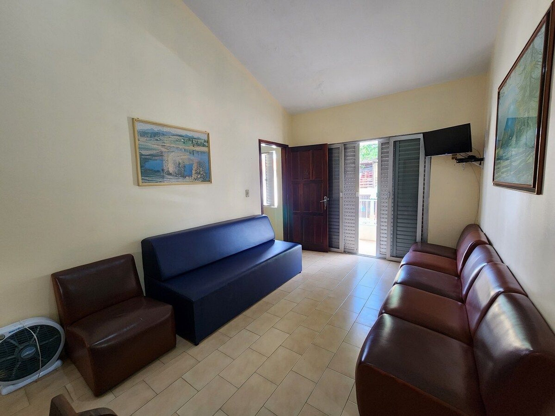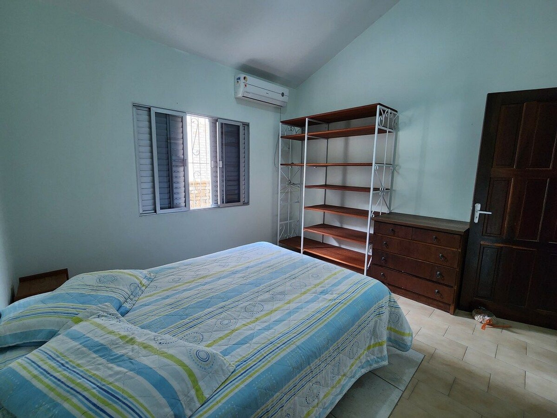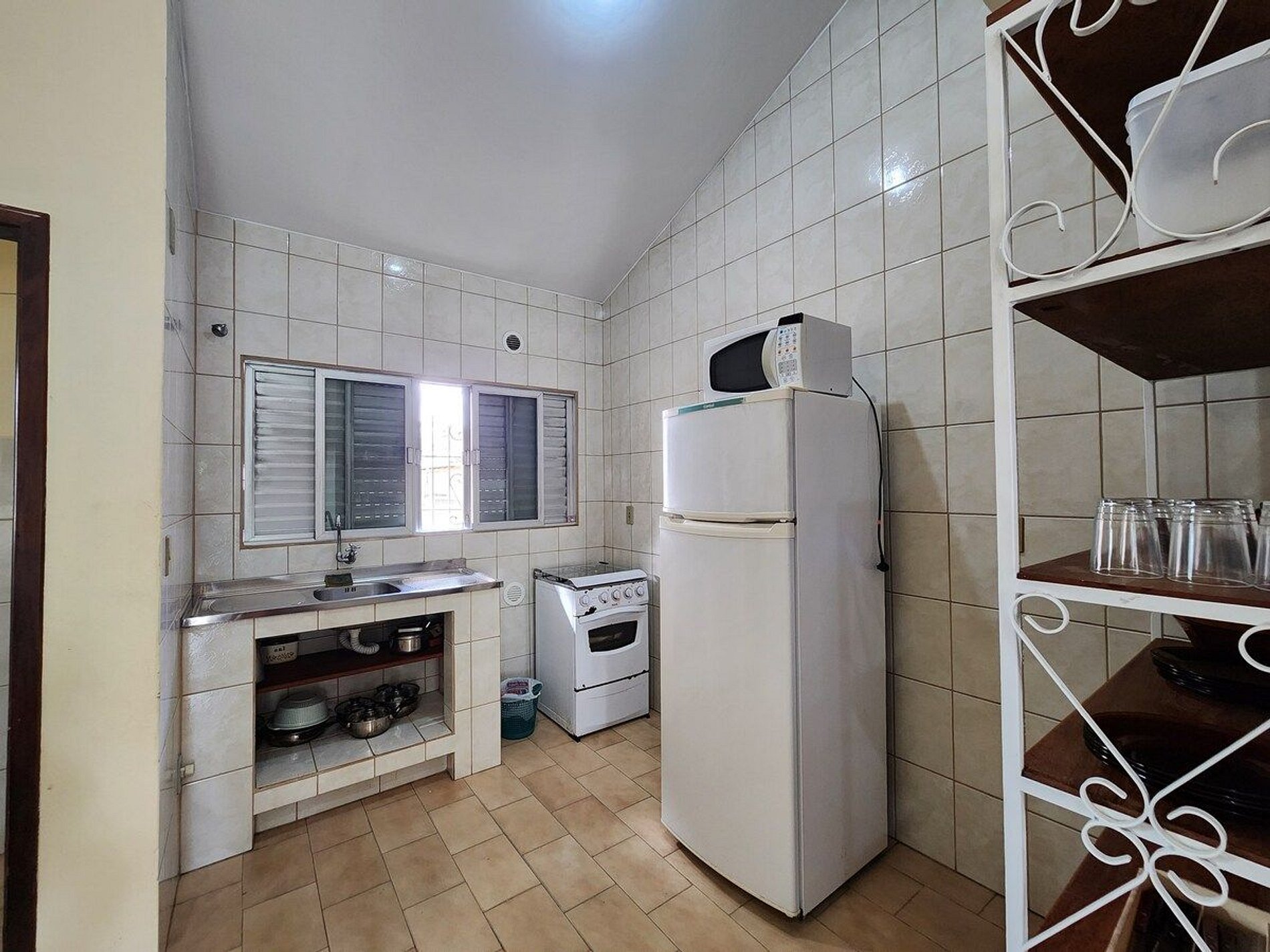 Apartamento amplo e espaçoso, contém: - Sala ampla (possui 1 sofá cama) - Cozinha completa - 3 quartos: Quarto 01 (Cama de casal e ar condicionado), Quarto 02 (2 camas de solteiro em beliche e ar condicionado), Quarto 03 (2 camas de solteiro em beliche e circulador de ar) - 1 banheiro - 1 vaga em frente ao prédio - Ampla área de serviço - Área de churrasqueira compartilhada - sacada com vista para a praia