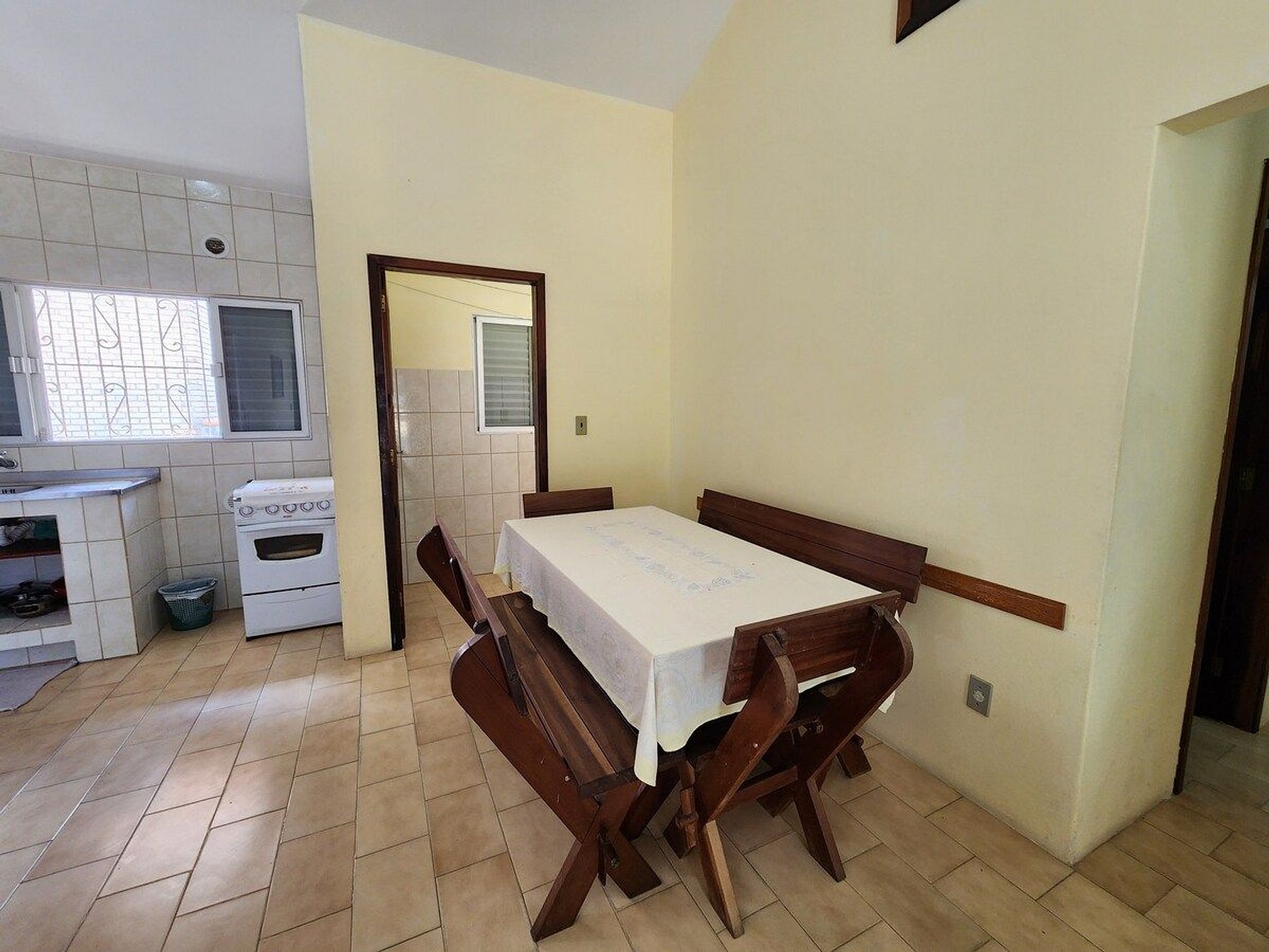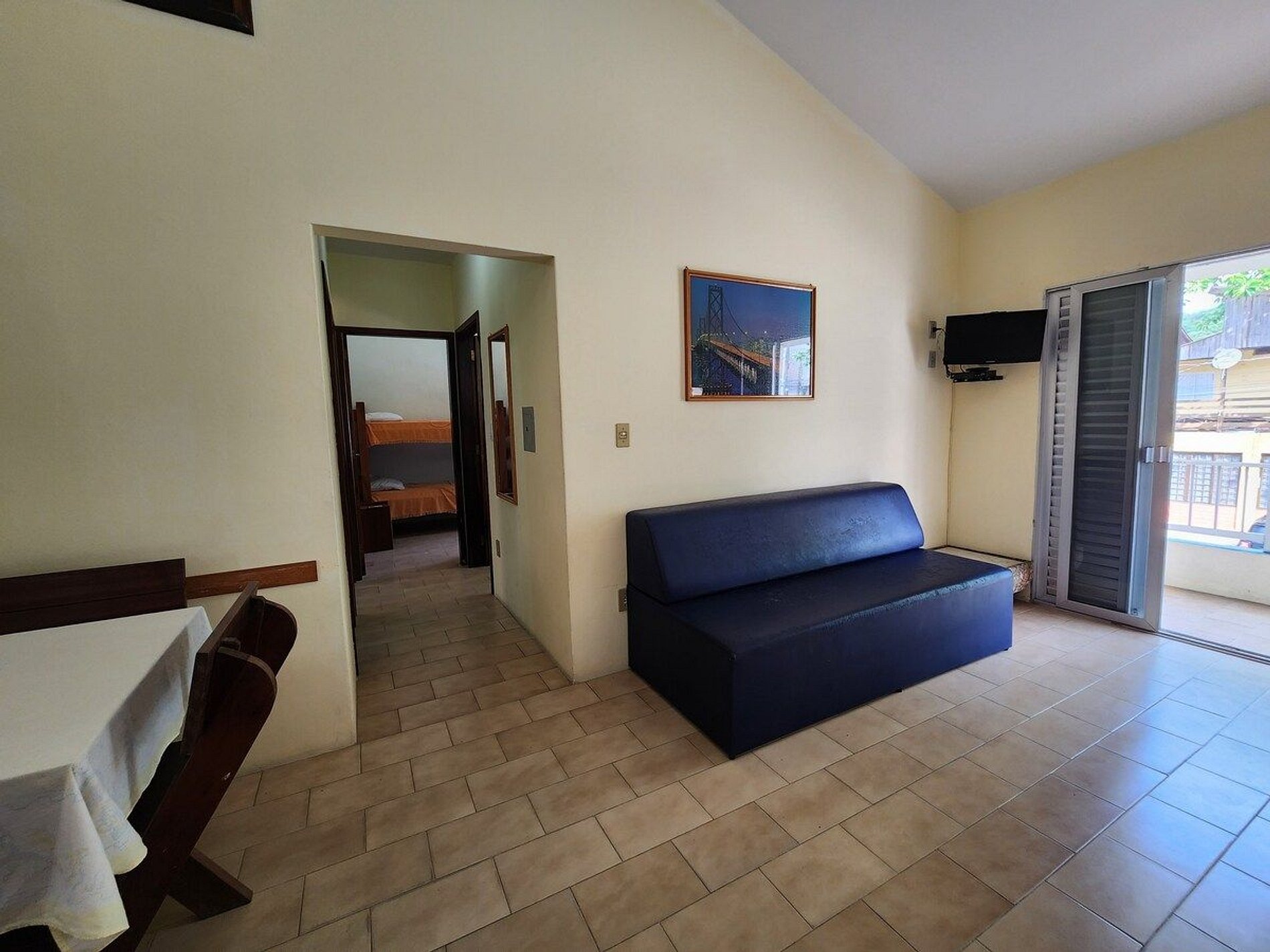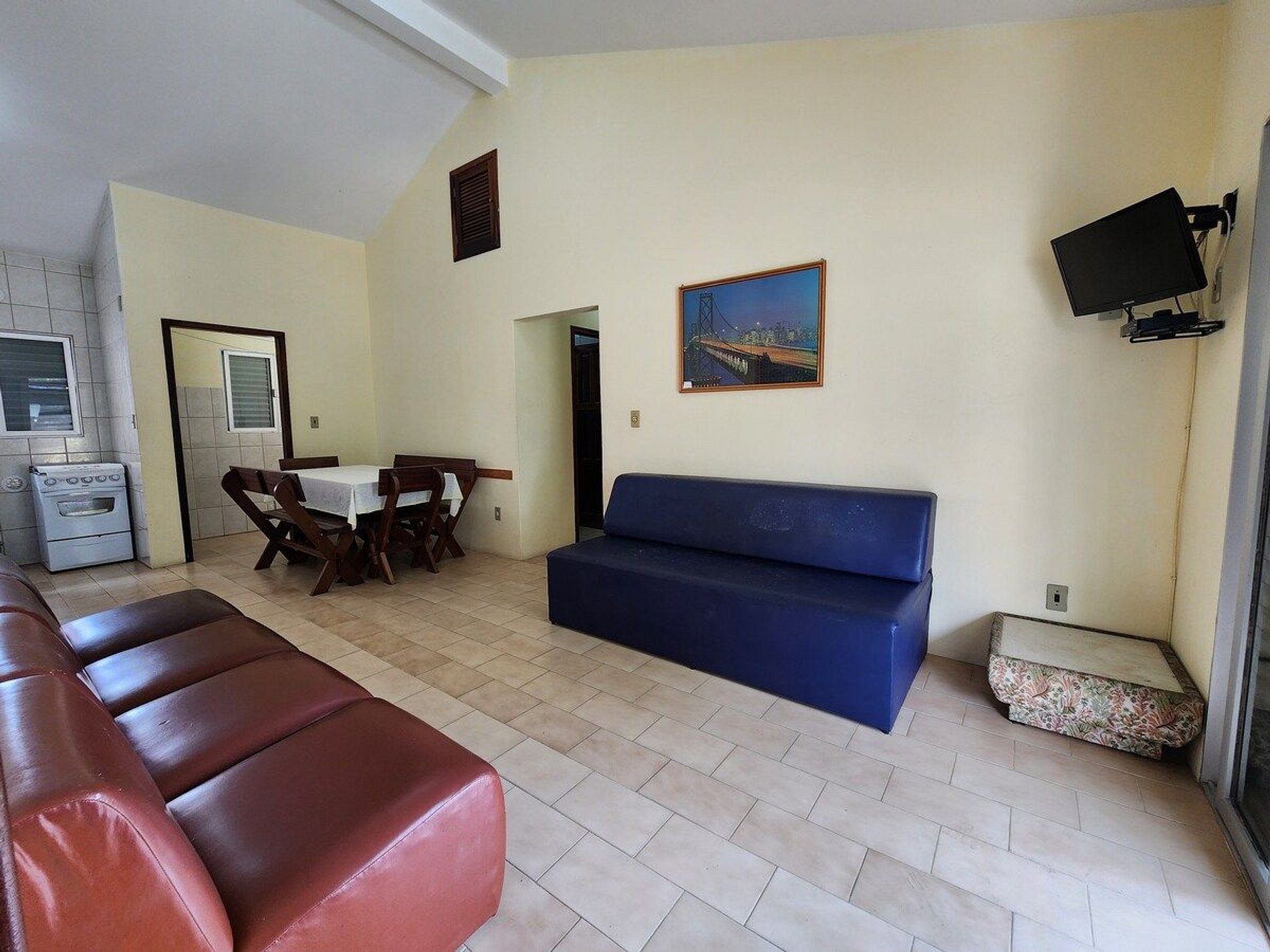 Apartamento amplo e espaçoso, contém: - Sala ampla (possui 1 sofá cama) - Cozinha completa - 3 quartos: Quarto 01 (Cama de casal e ar condicionado), Quarto 02 (2 camas de solteiro em beliche e ar condicionado), Quarto 03 (2 camas de solteiro em beliche e circulador de ar) - 1 banheiro - 1 vaga em frente ao prédio - Ampla área de serviço - Área de churrasqueira compartilhada - sacada com vista para a praia