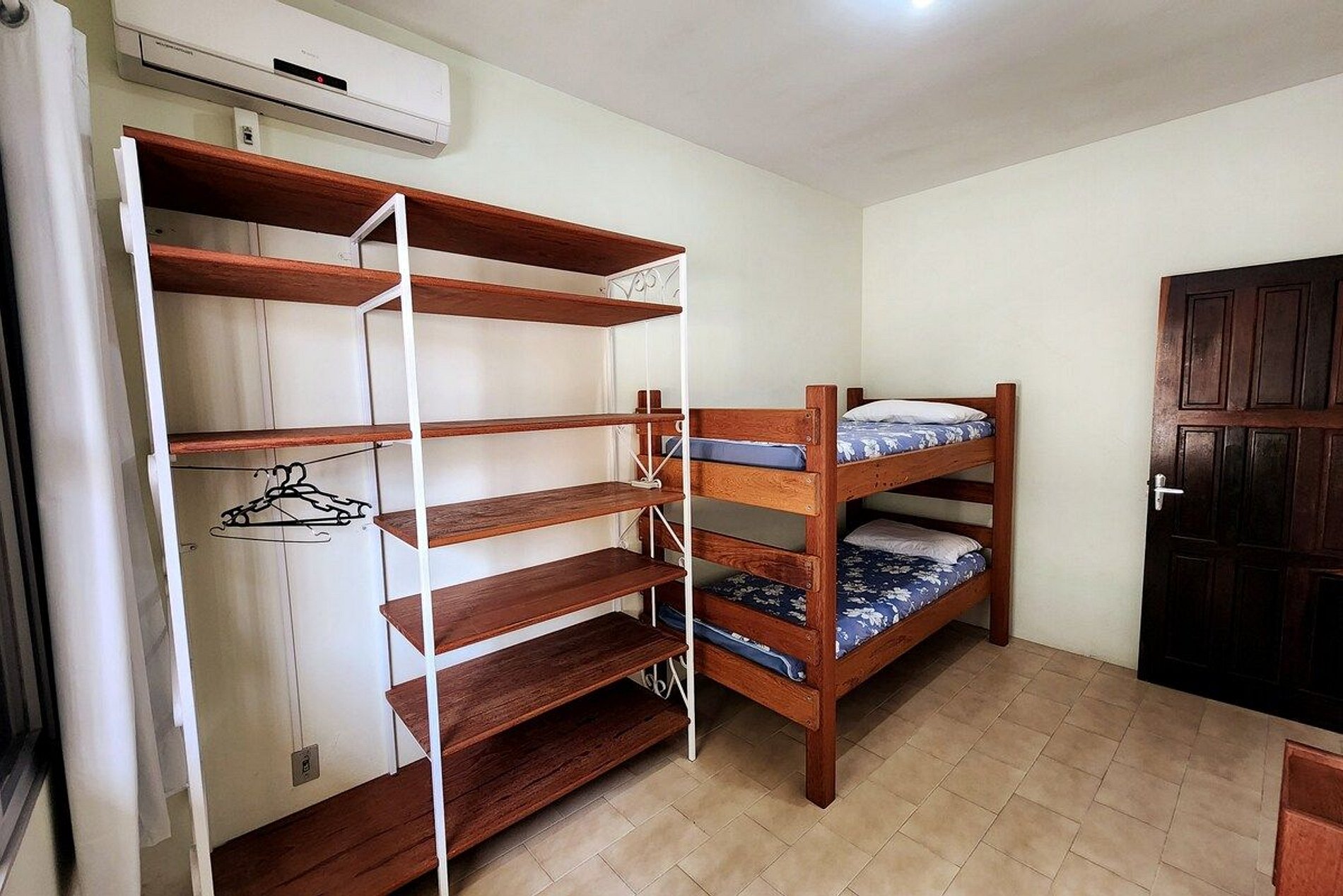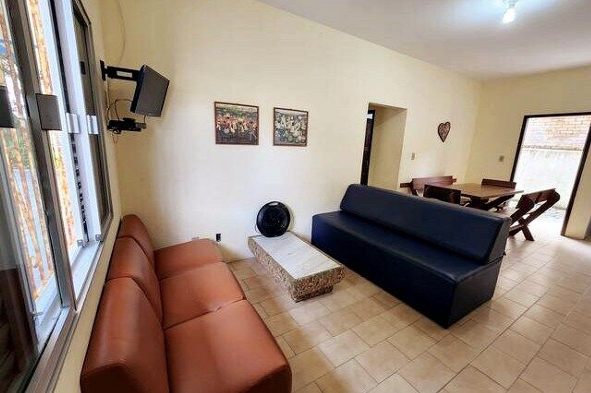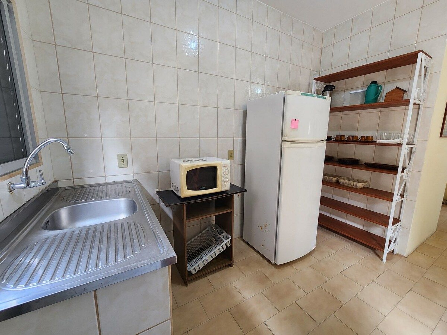Apartamento amplo e espaçoso, contém: - Sala ampla (possui 1 sofá cama) - Cozinha completa - 3 quartos: Quarto 01 (Cama de casal e ar condicionado), Quarto 02 (2 camas de solteiro em beliche e ar condicionado), Quarto 03 (2 camas de solteiro em beliche e circulador de ar) - 1 banheiro - 1 vaga em frente ao prédio - Ampla área de serviço - Área de churrasqueira compartilhada