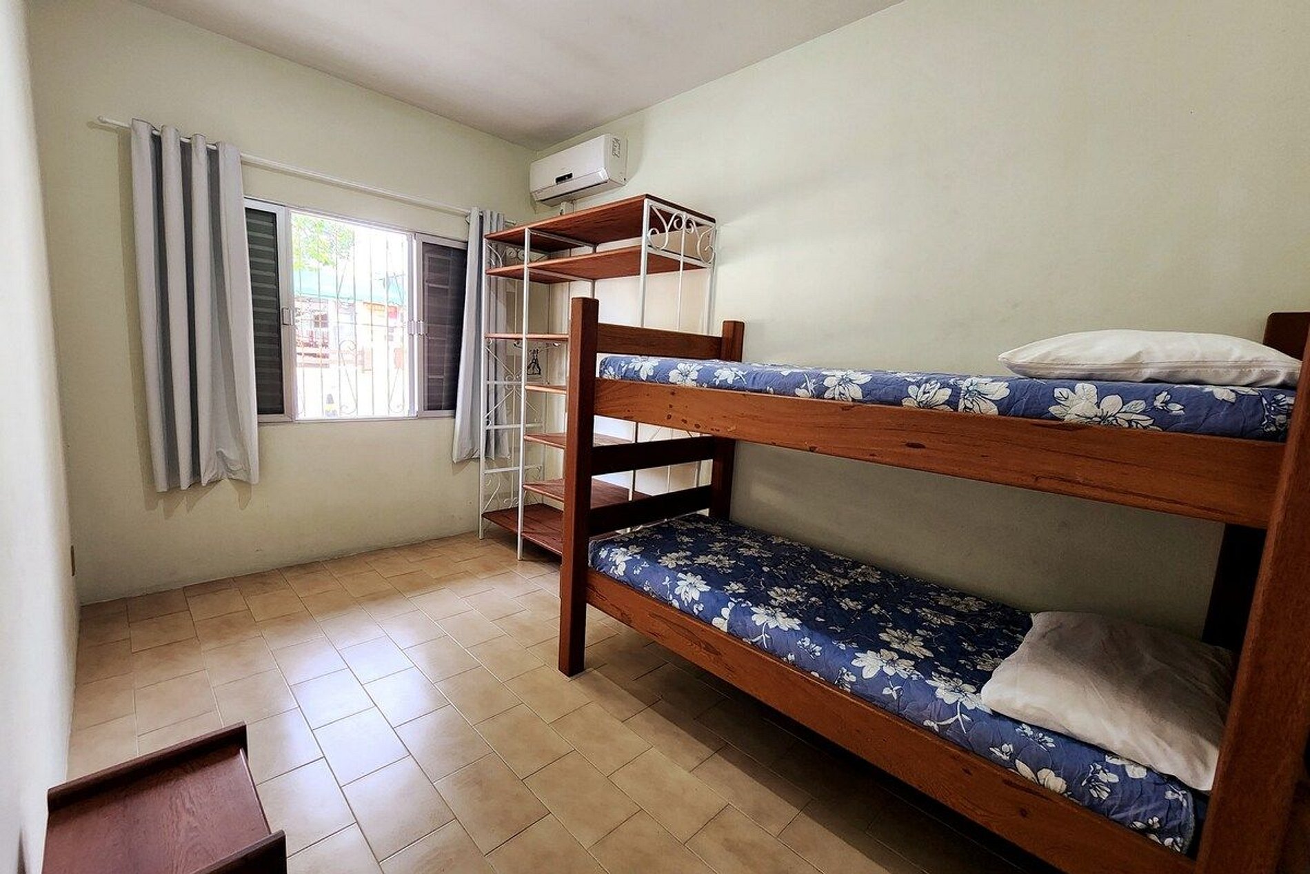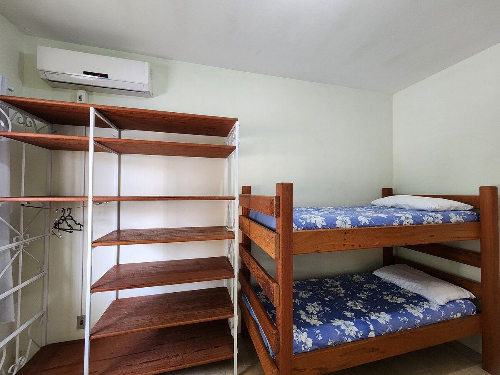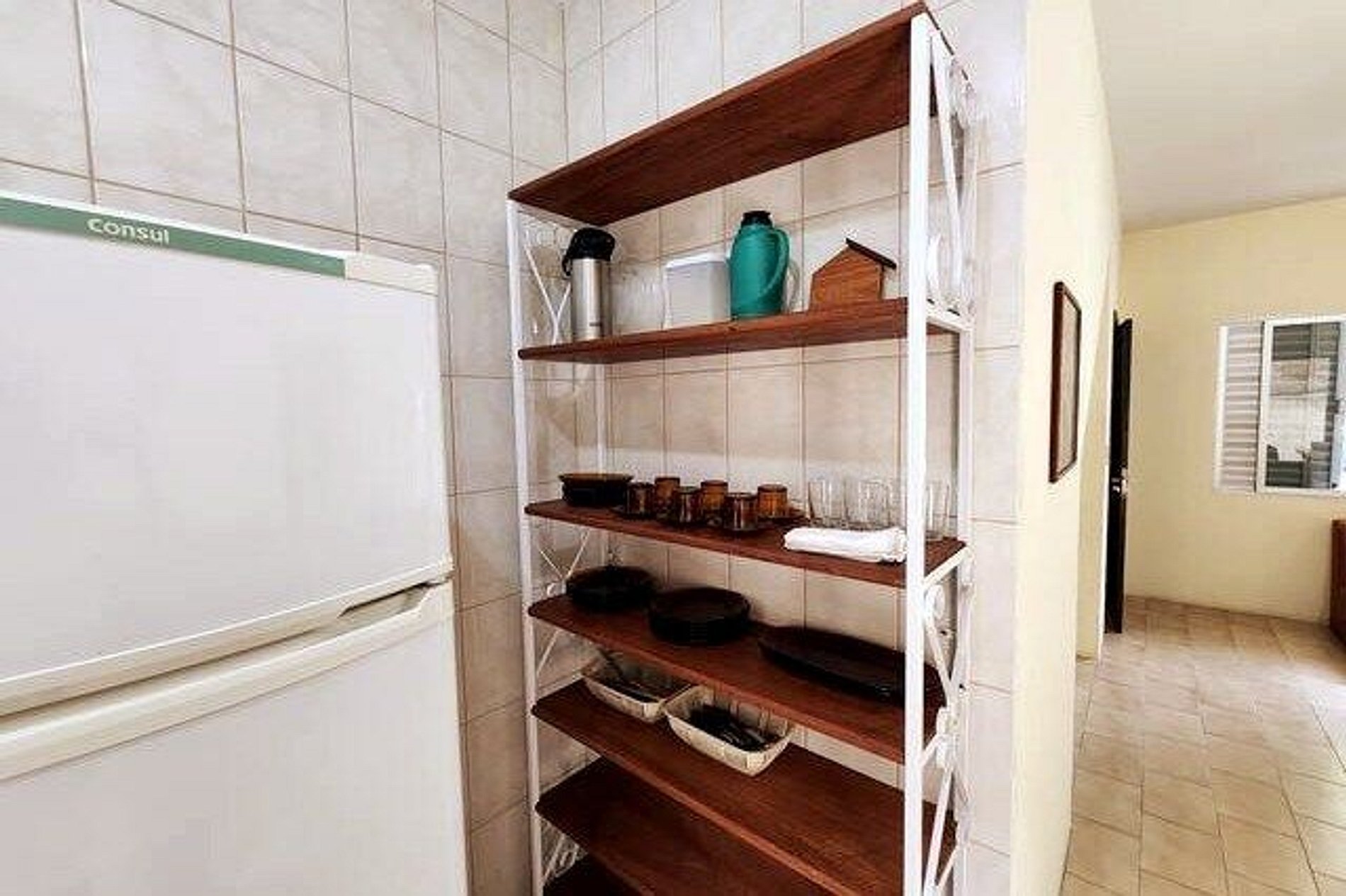 Apartamento amplo e espaçoso, contém: - Sala ampla (possui 1 sofá cama) - Cozinha completa - 3 quartos: Quarto 01 (Cama de casal e ar condicionado), Quarto 02 (2 camas de solteiro em beliche e ar condicionado), Quarto 03 (2 camas de solteiro em beliche e circulador de ar) - 1 banheiro - 1 vaga em frente ao prédio - Ampla área de serviço - Área de churrasqueira compartilhada